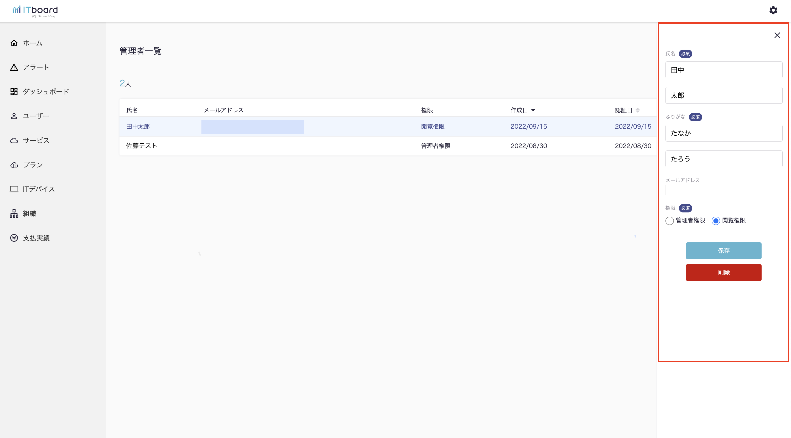ITboardでは、登録されている管理者アカウントを削除することが可能です。