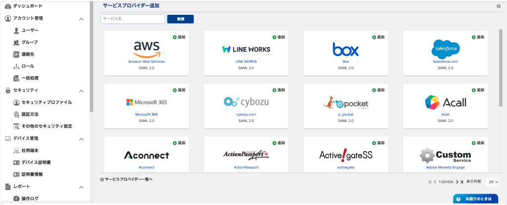 2. 「サービスプロバイダー追加」から追加可能なサービスプロバイダー一覧画面へ遷移する