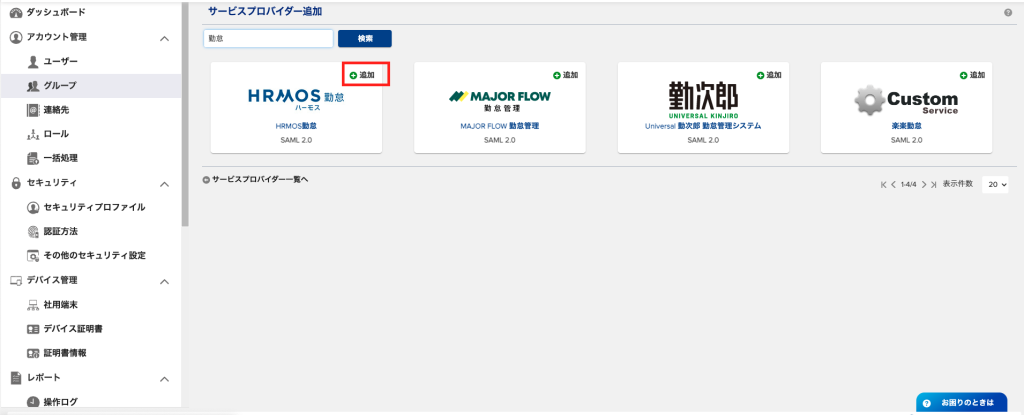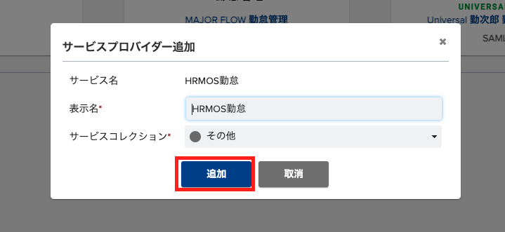 3.「追加」ボタンからサービスプロバイダーとして追加するサービスを追加する