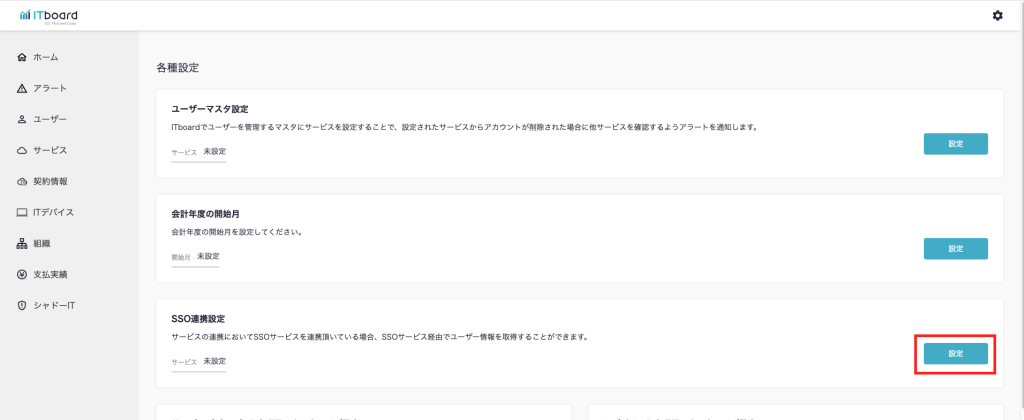3. SSO連携設定の「設定」をクリックする