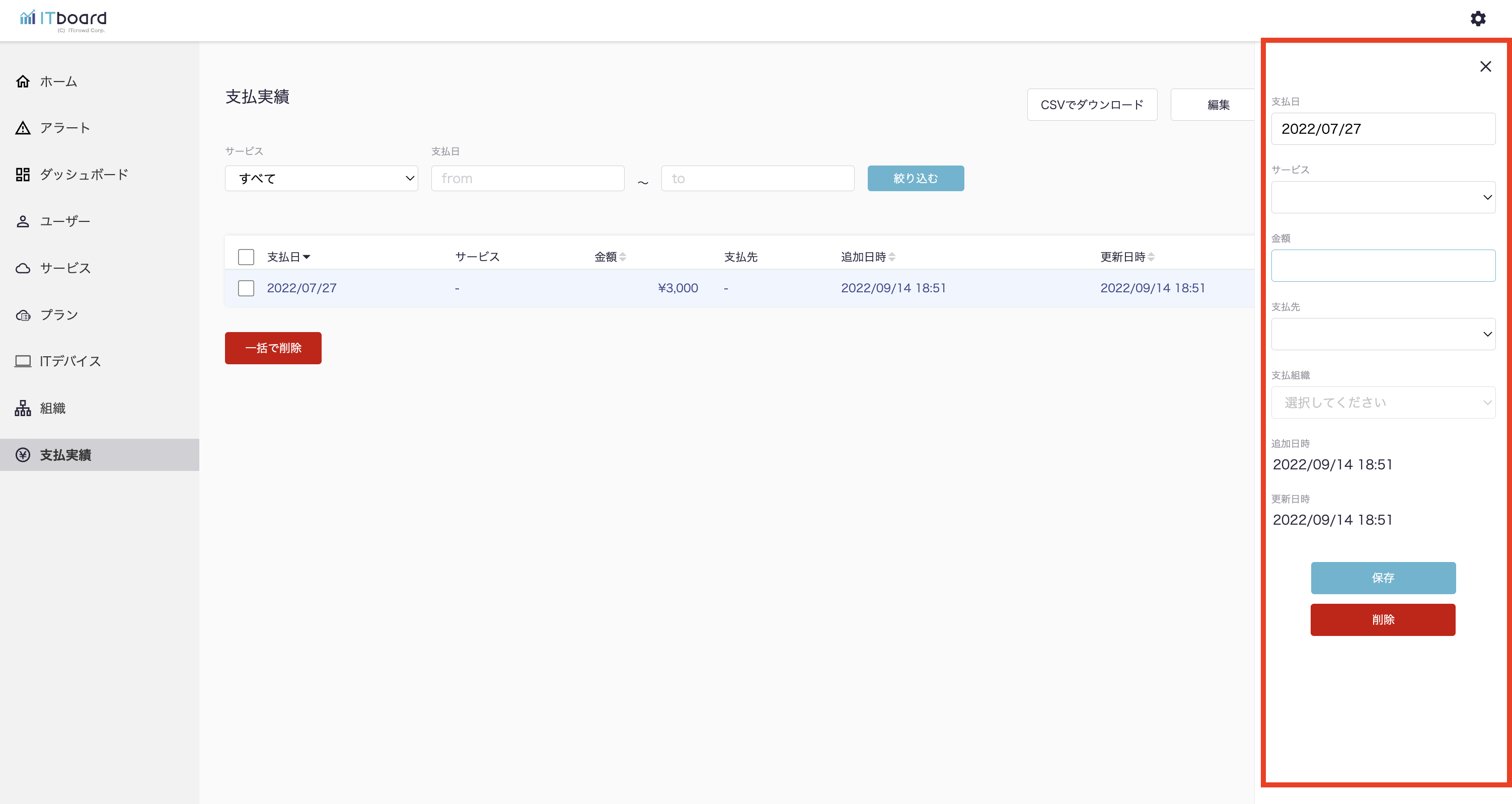 ITboardにログイン後、サイドメニューの「支払実績」を押下します。