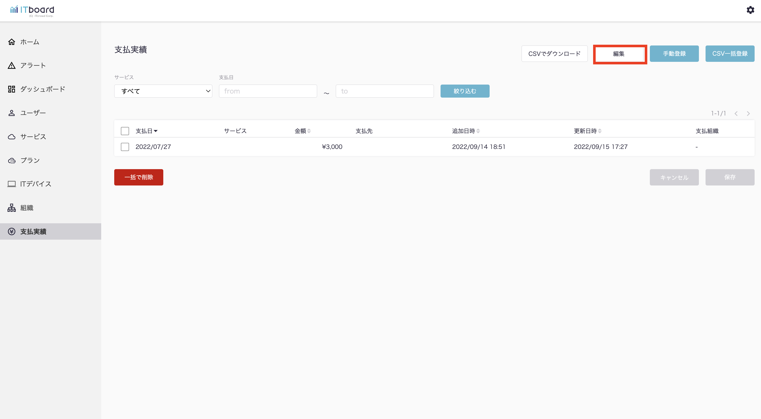 または、支払実績一覧ページの上部にある「編集」ボタンを押下します。