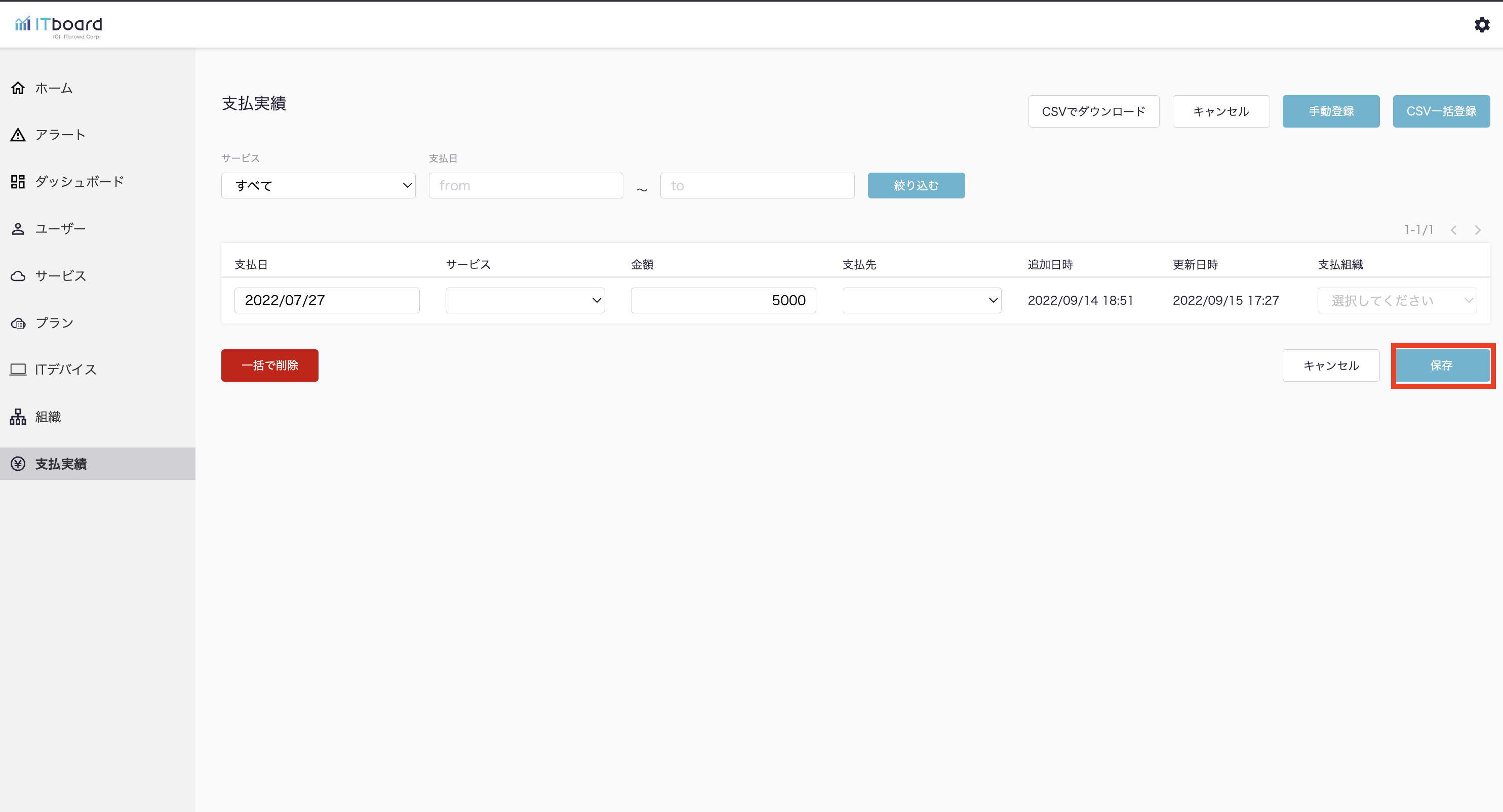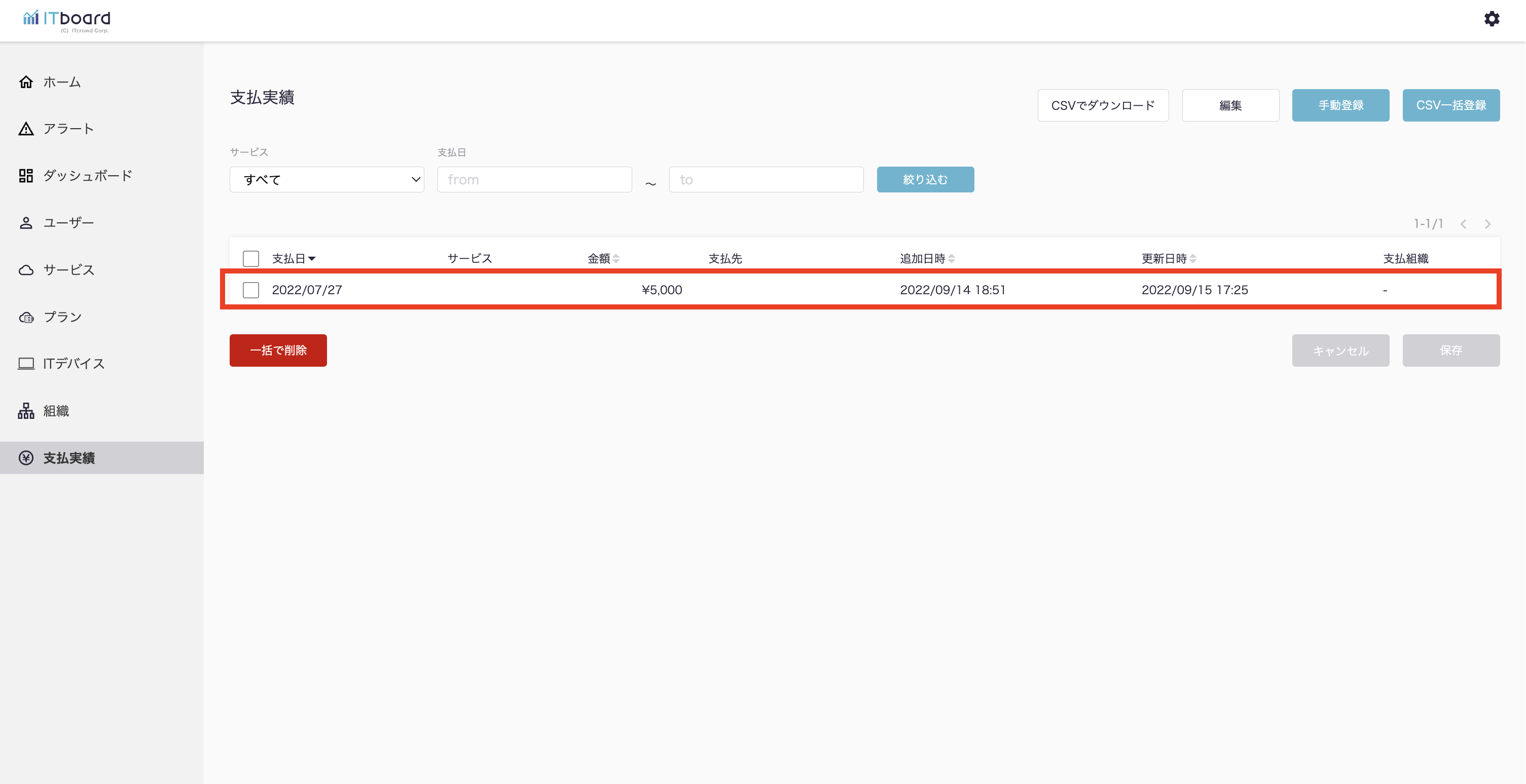 ITboardにログイン後、サイドメニューの「支払実績」を押下します。