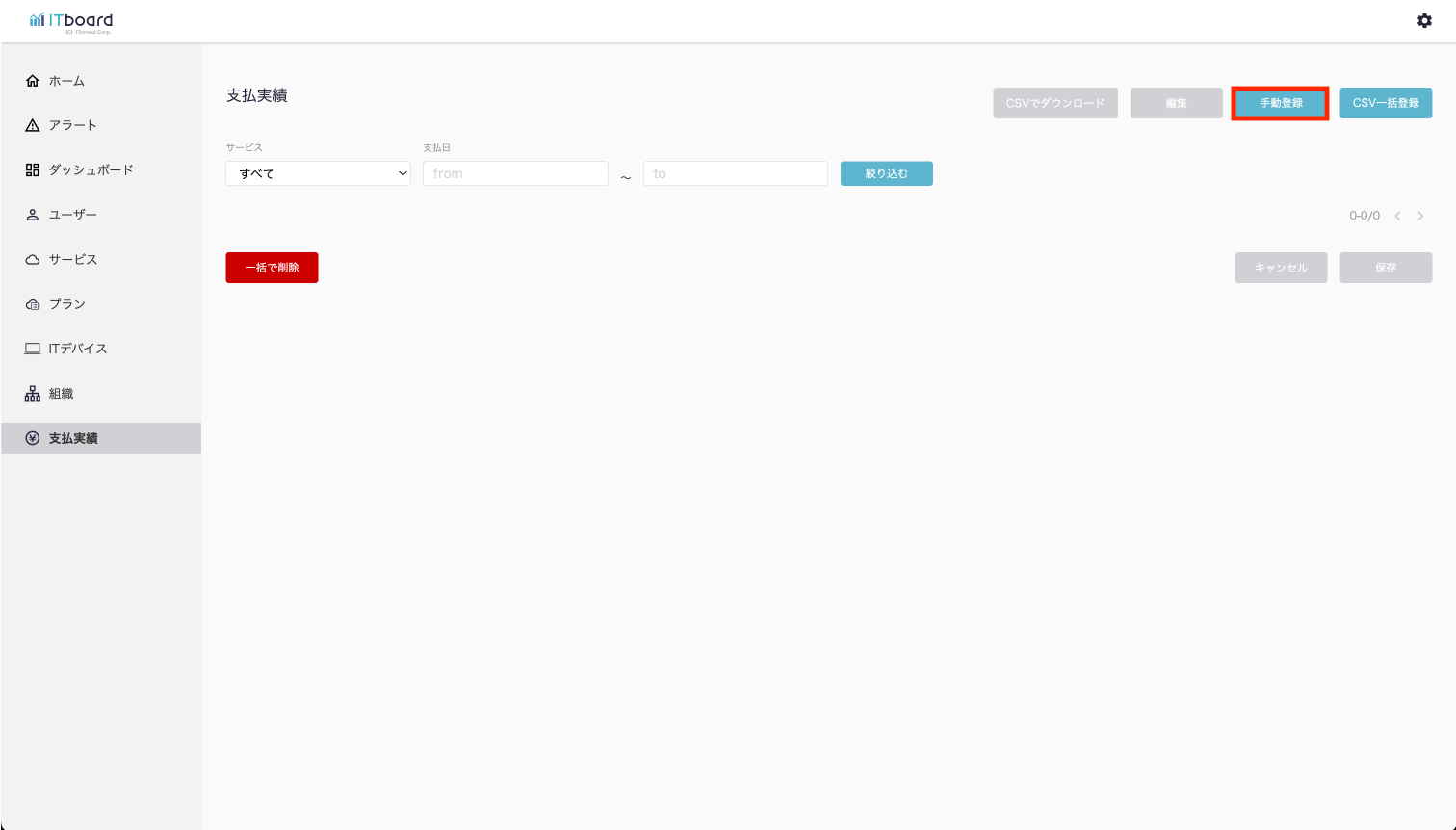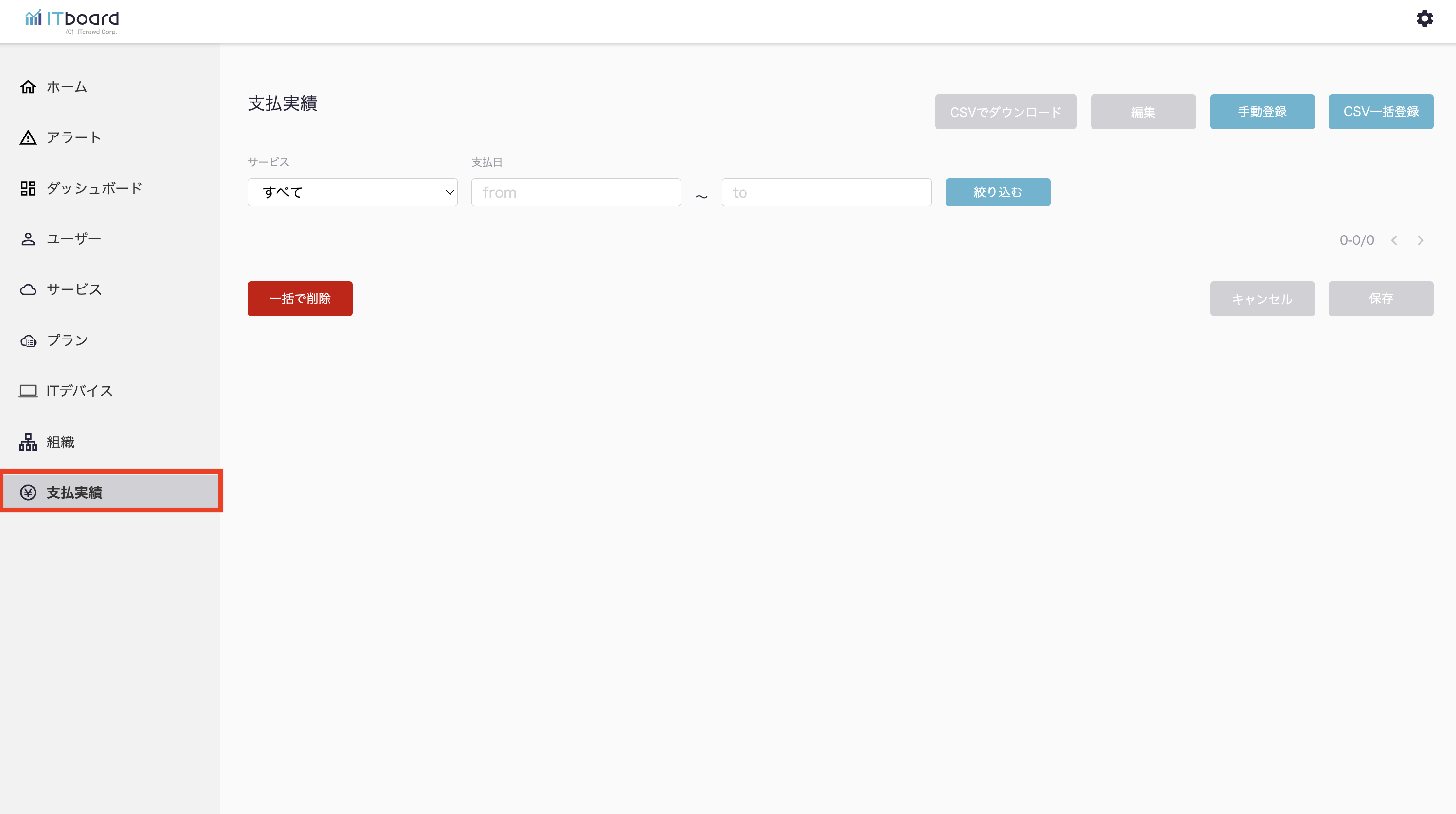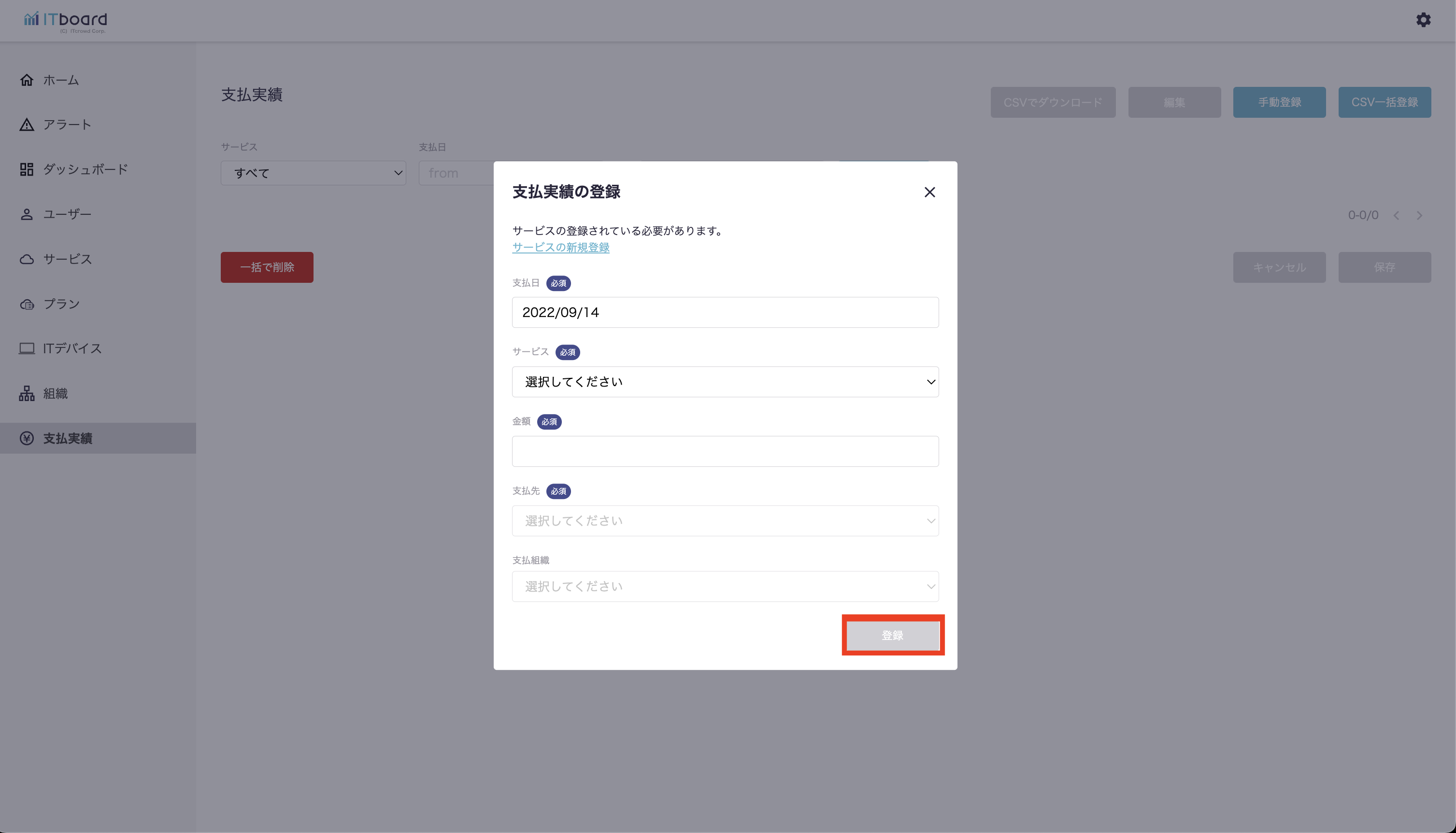 支払実績の登録には、ITBoardにサービスが登録されていることが必要です。