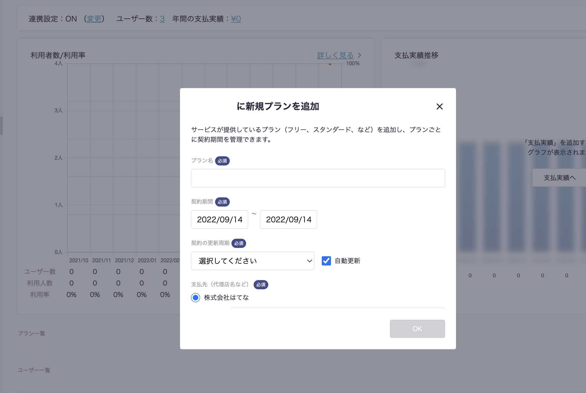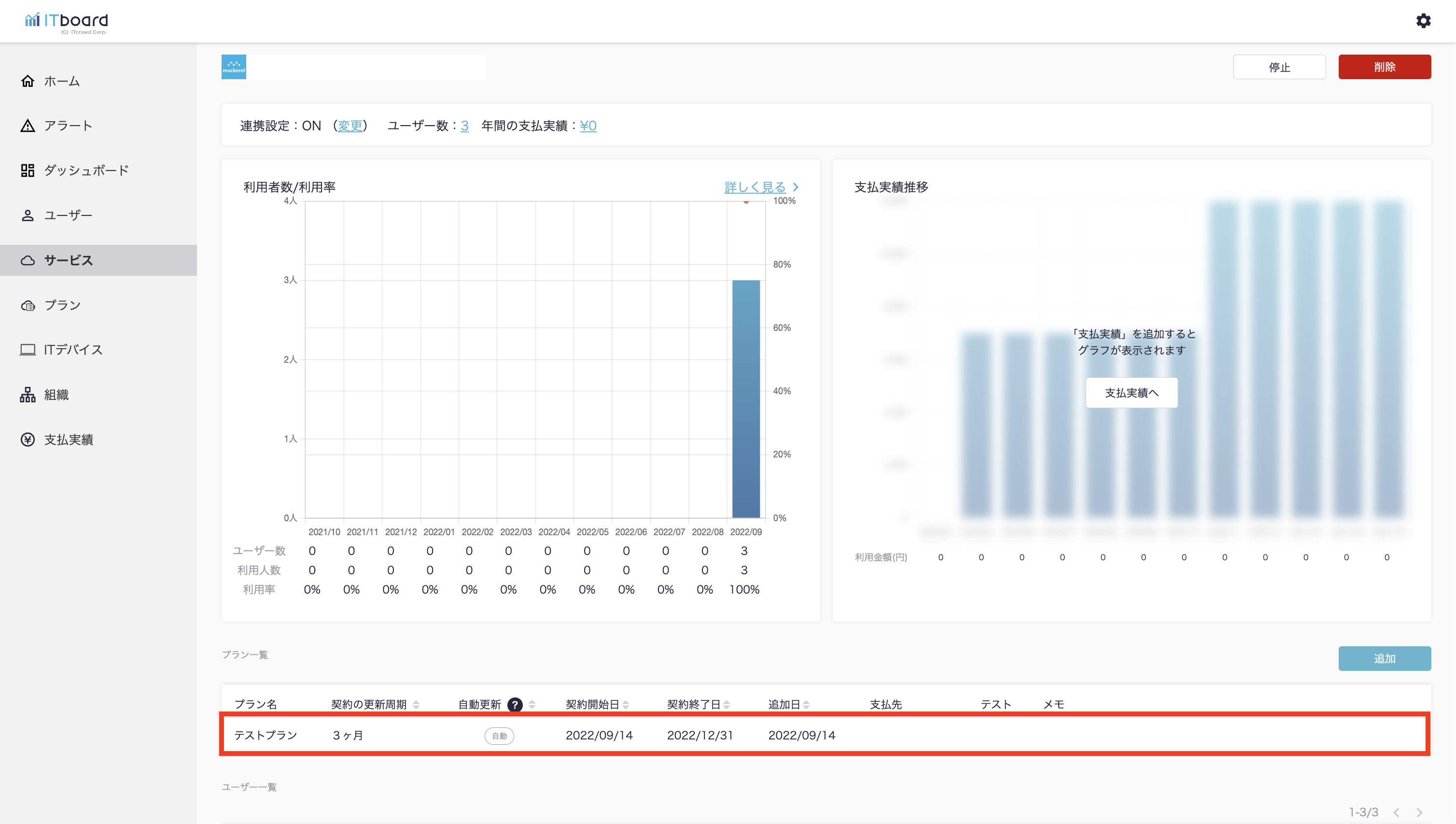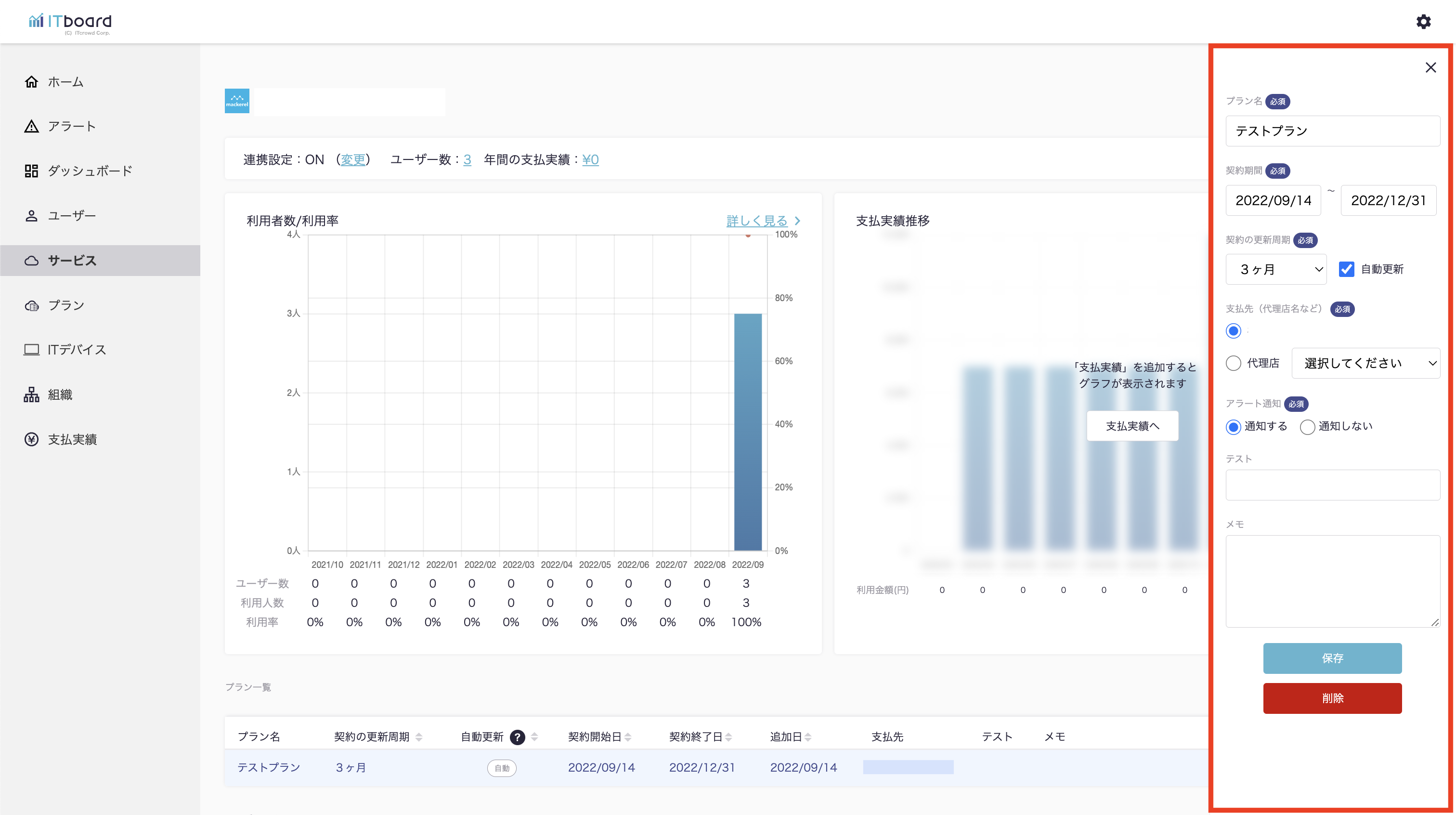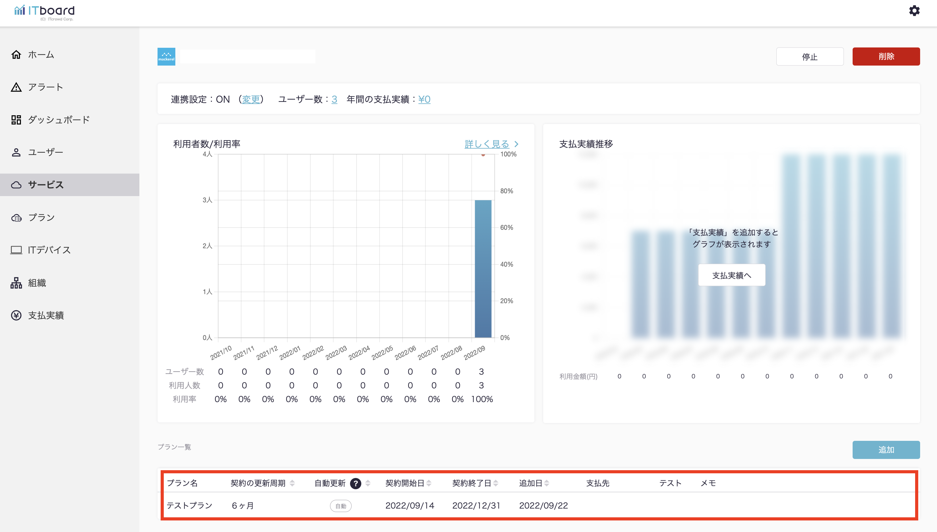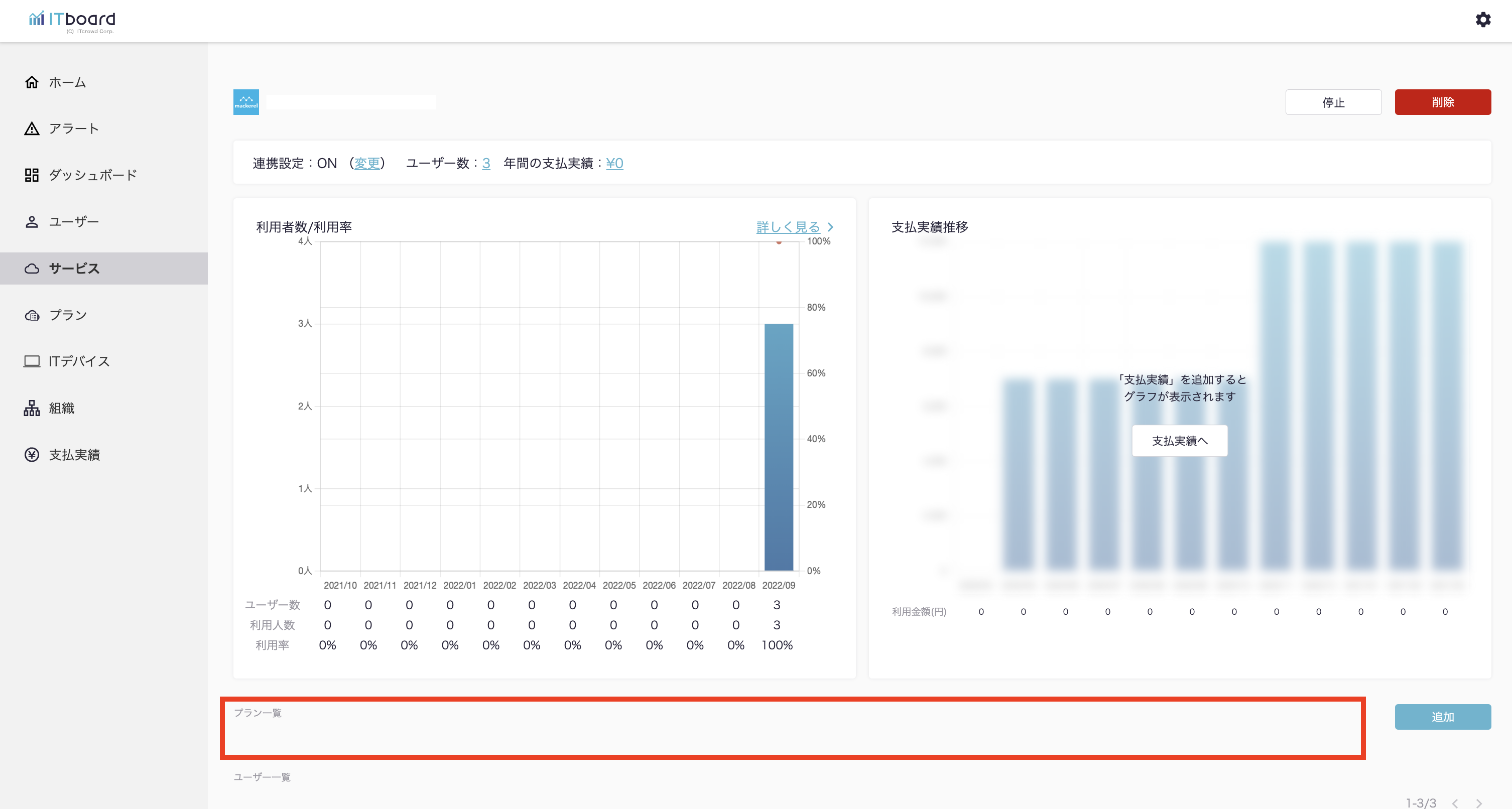ITboardでは、連携したサービスに契約プランを設定することが可能です。