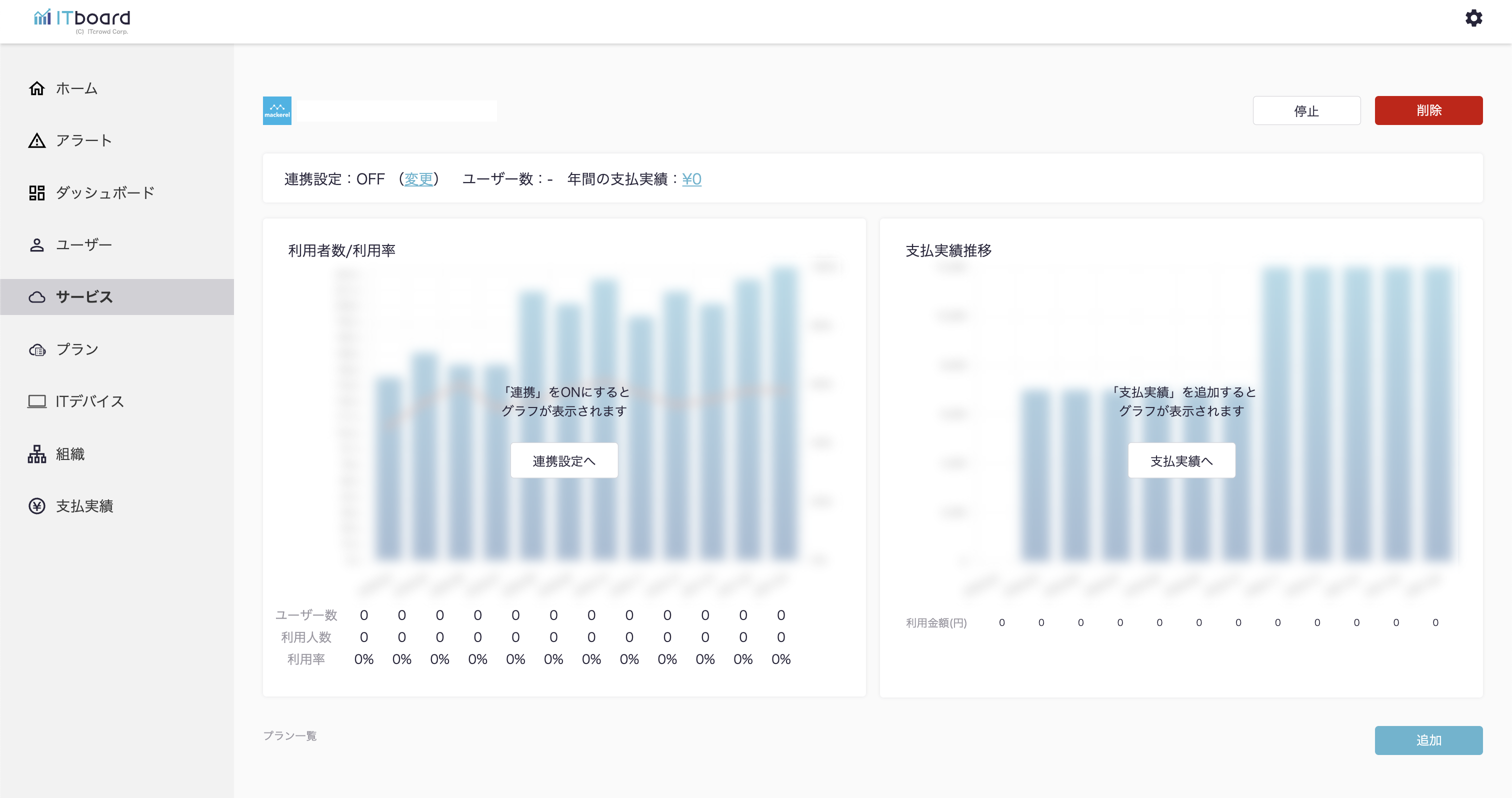 ITboardのサイドメニューにある「サービス」ボタンを押下し、追加したサービス詳細画面に移動します。