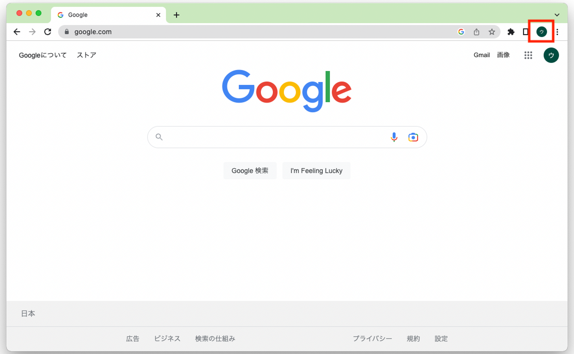 ブラウザの右上部にある「丸アイコン」をクリックします。