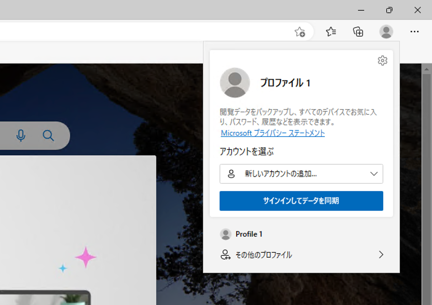 企業で利用しているMicrosoftアカウントでEdgeにサインインする。