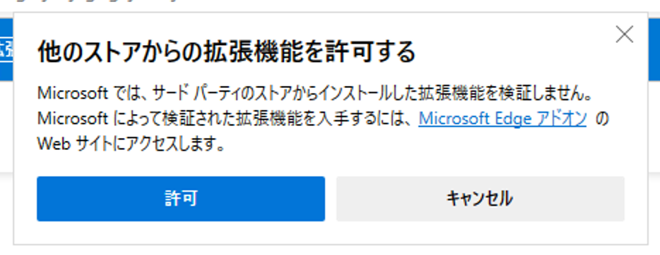 chrome ウェブストアを開き、画面最上部に表示される「他のストアからの拡張機能を許可する」を押下する。