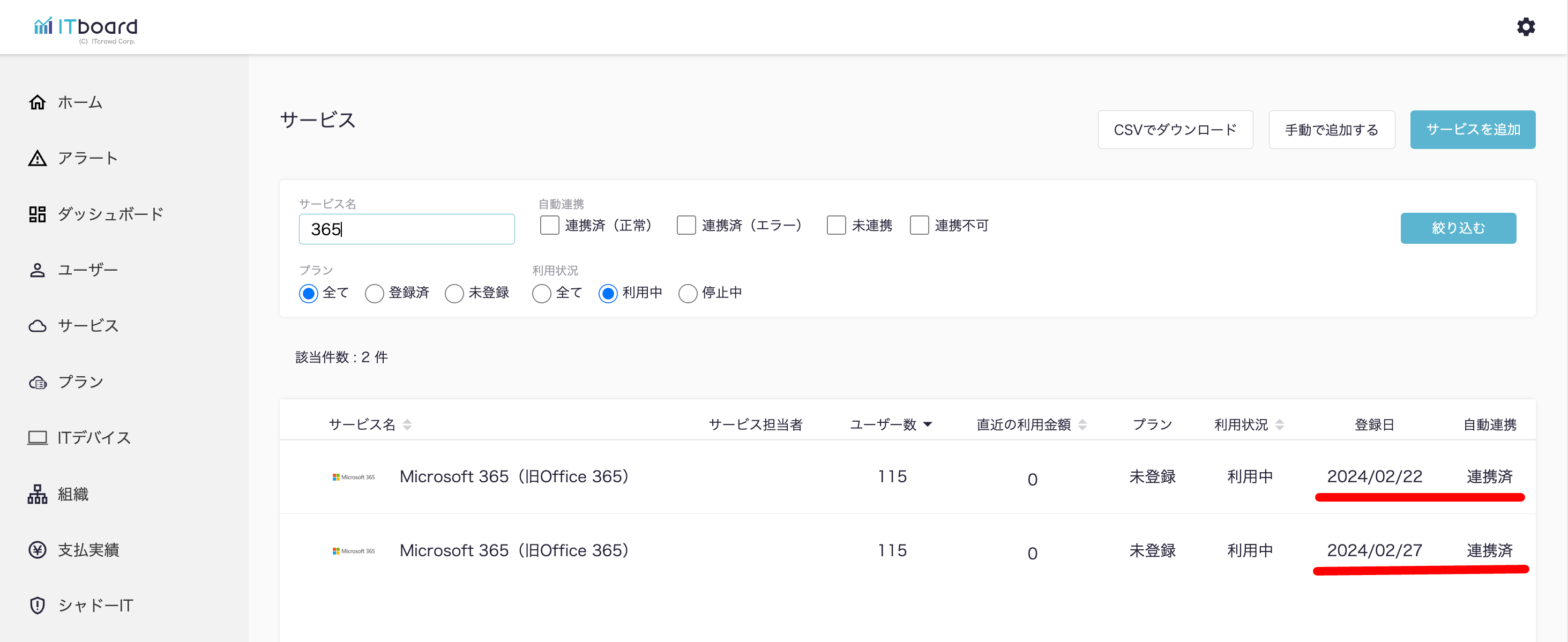 - あらかじめエンタープライズアプリケーションとしてSPを登録したMicrosoft 365(Entra ID(旧名称:Azure AD))をITboardに追加・連携していること。Microsoft 365(Entra ID(旧名称:Azure AD))の追加・連携の手順はこちらのマニュアルをご覧ください。