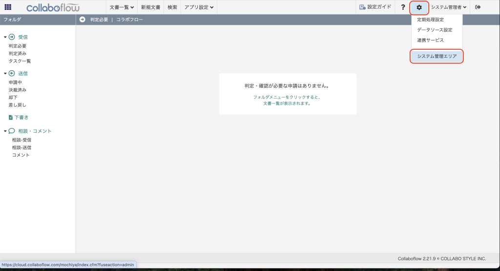 2. システム管理エリアに遷移する。