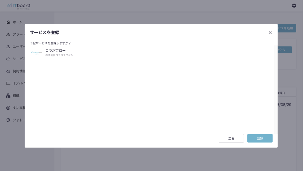 ITboardのアプリ連携ページでコラボフローを連携する手順です。