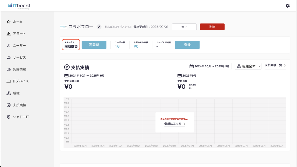 4. ステータスが「同期成功」になり、コラボフローに登録しているのユーザーがインポートされていたら完了。