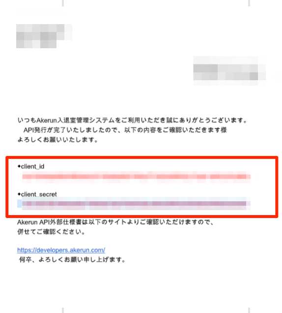 API申し込み後、メールで送られてくるclient_id, client_secretをコピーし保管します。