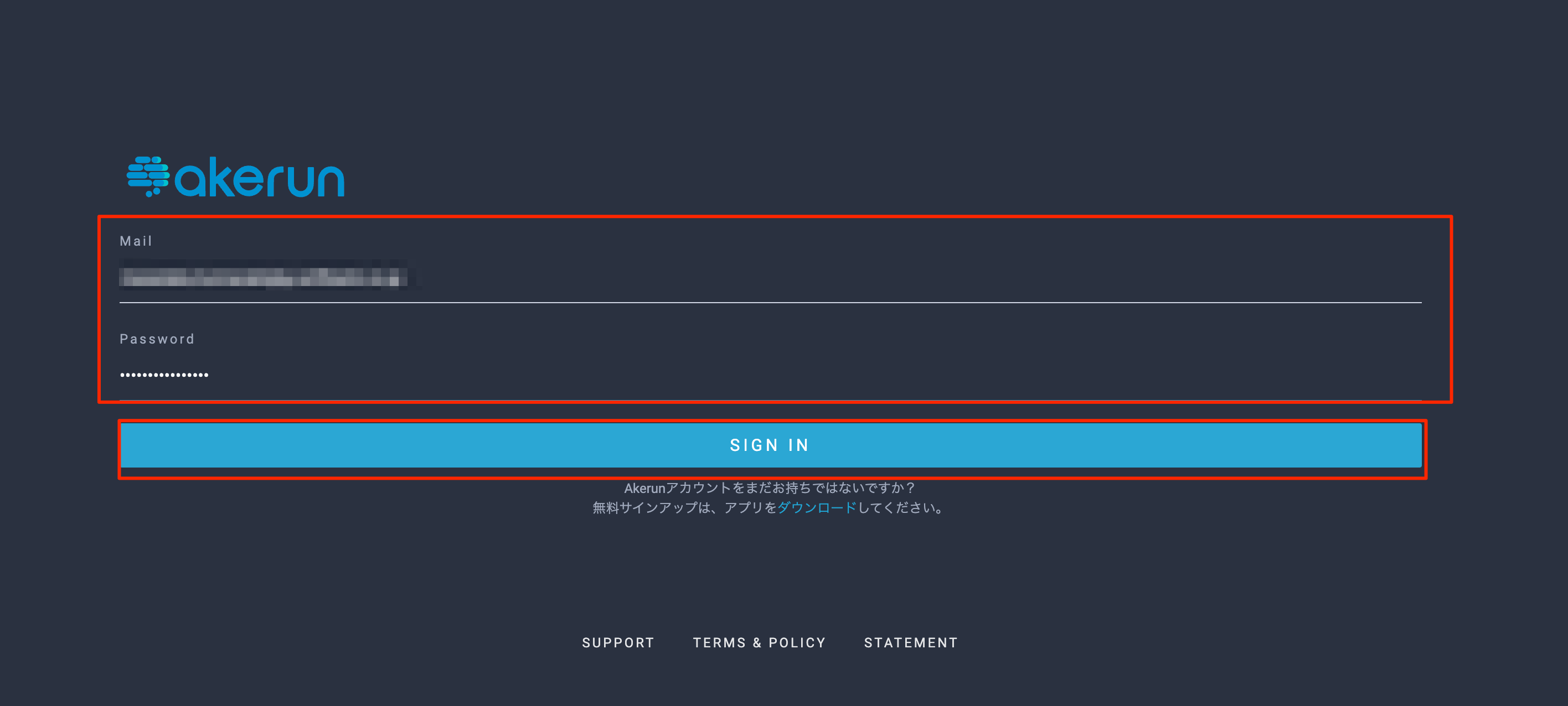 Akerunアカウントでサインインします。