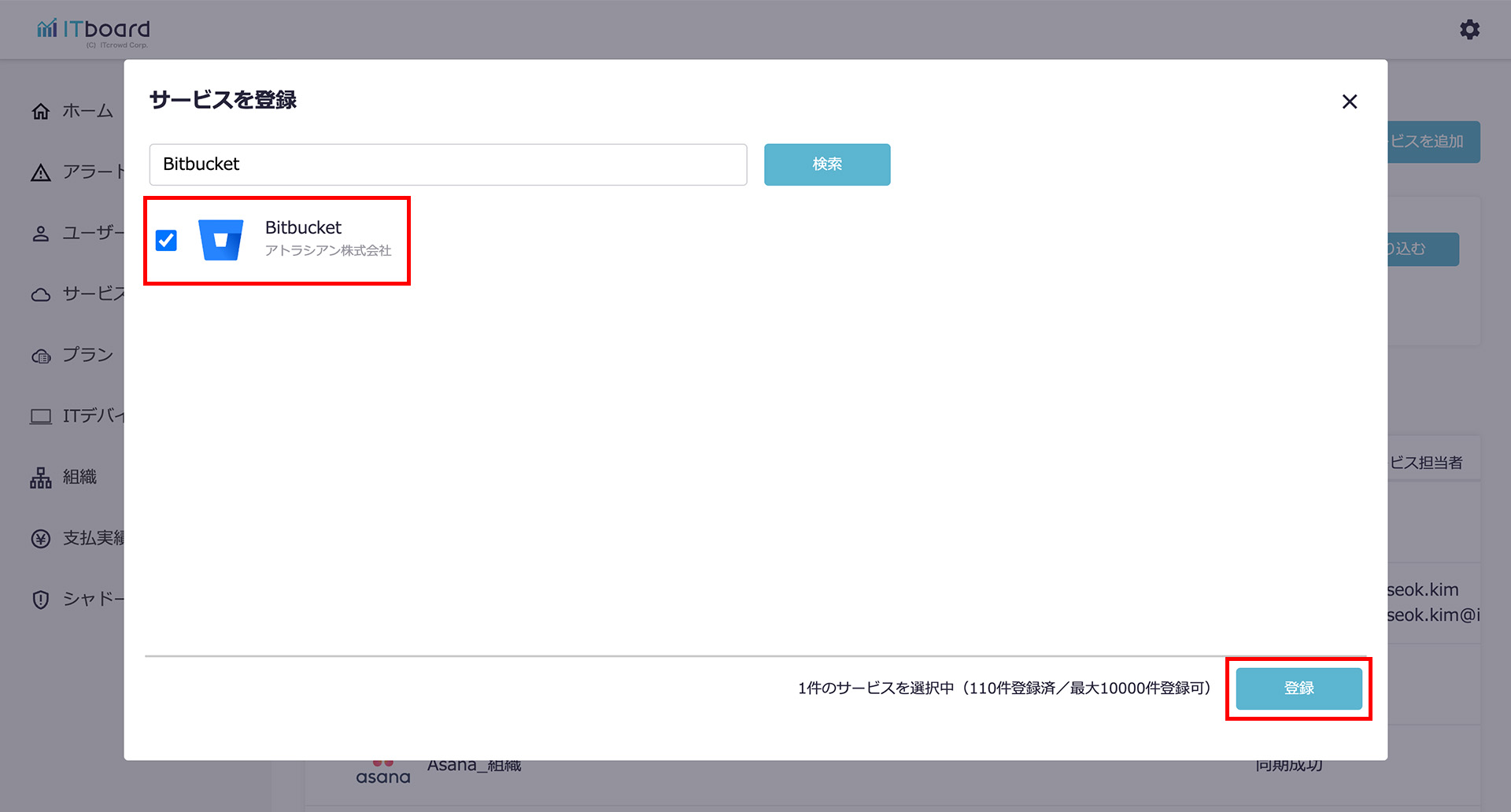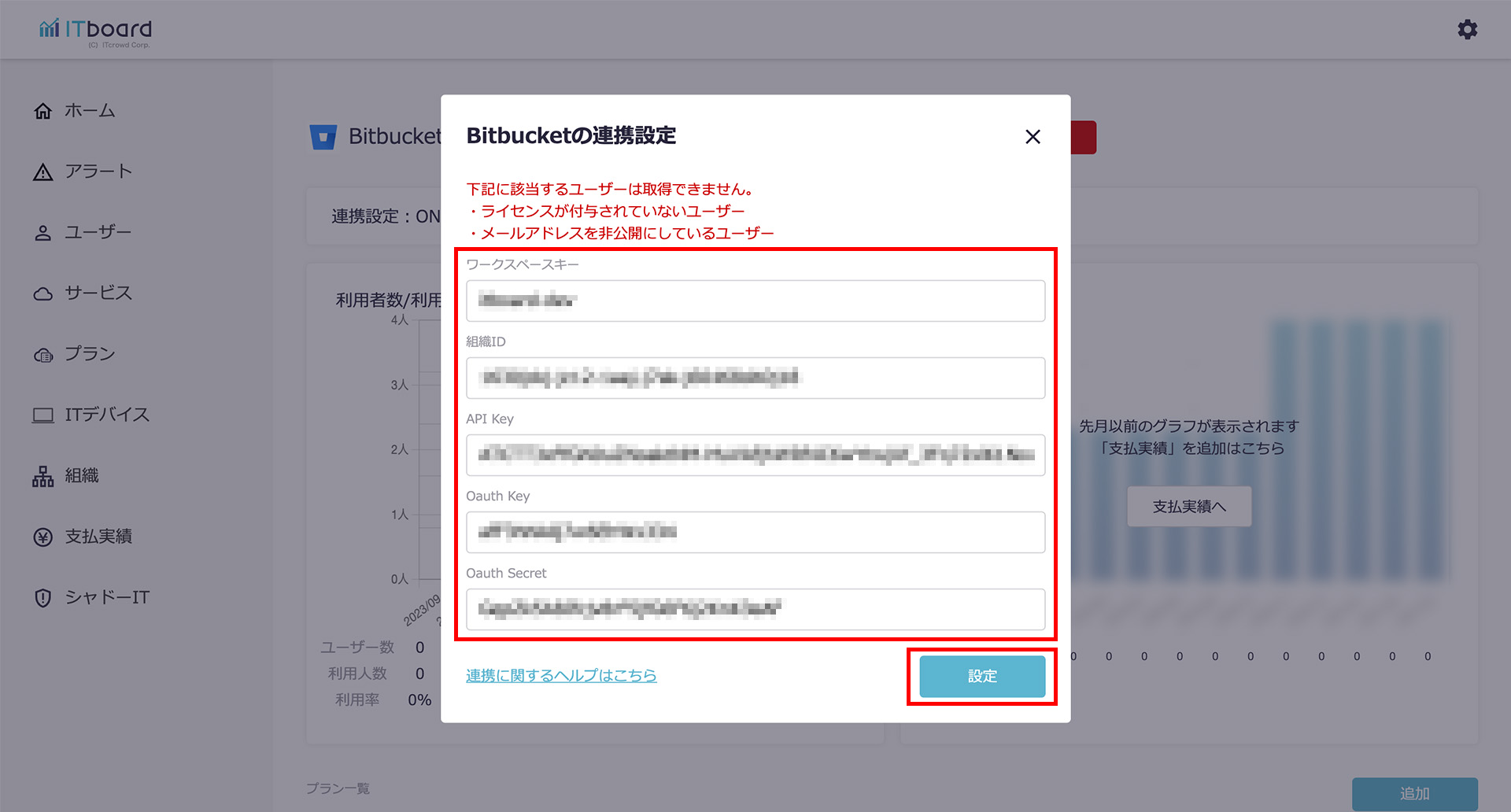 ITboardのアプリ連携ページでBitbucketを連携する手順です。