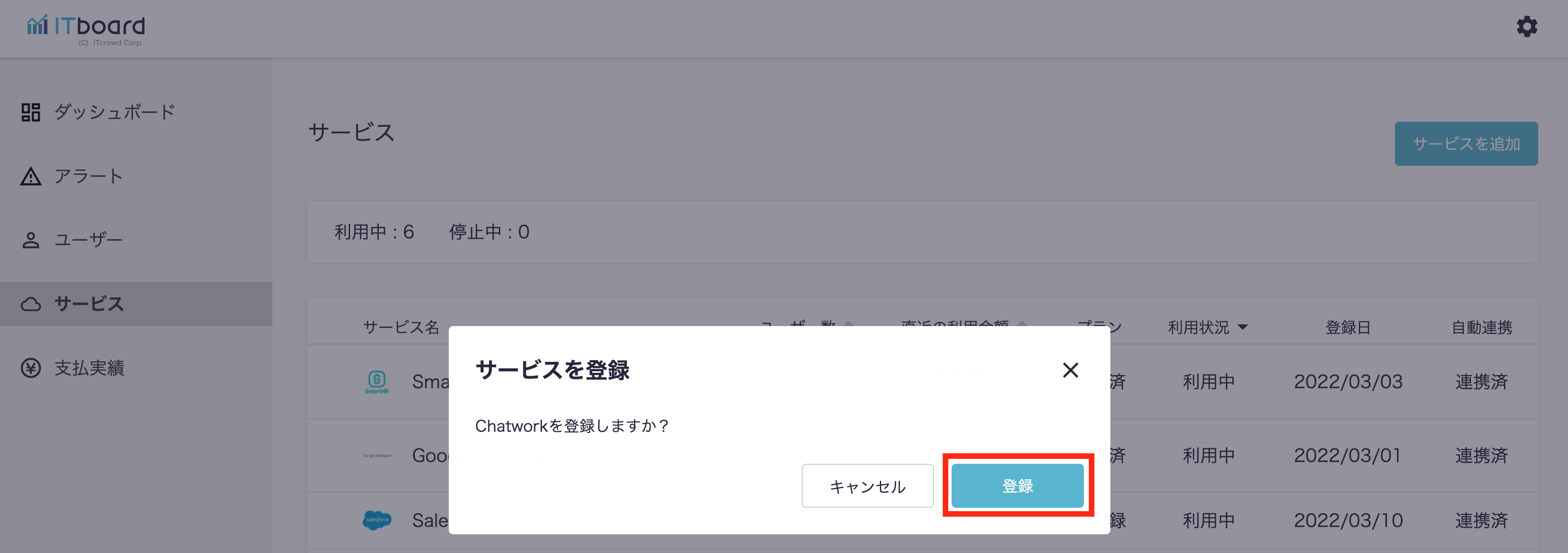 登録確認のモーダルが出現するので、『登録』ボタンを押下します。