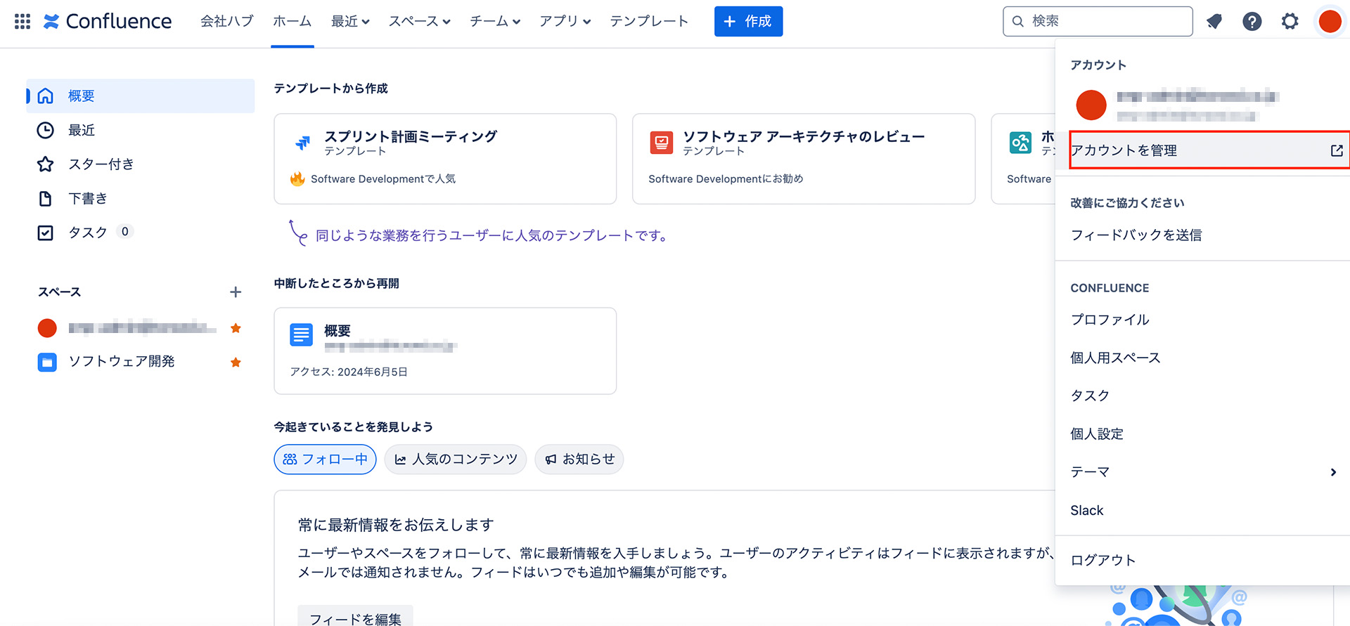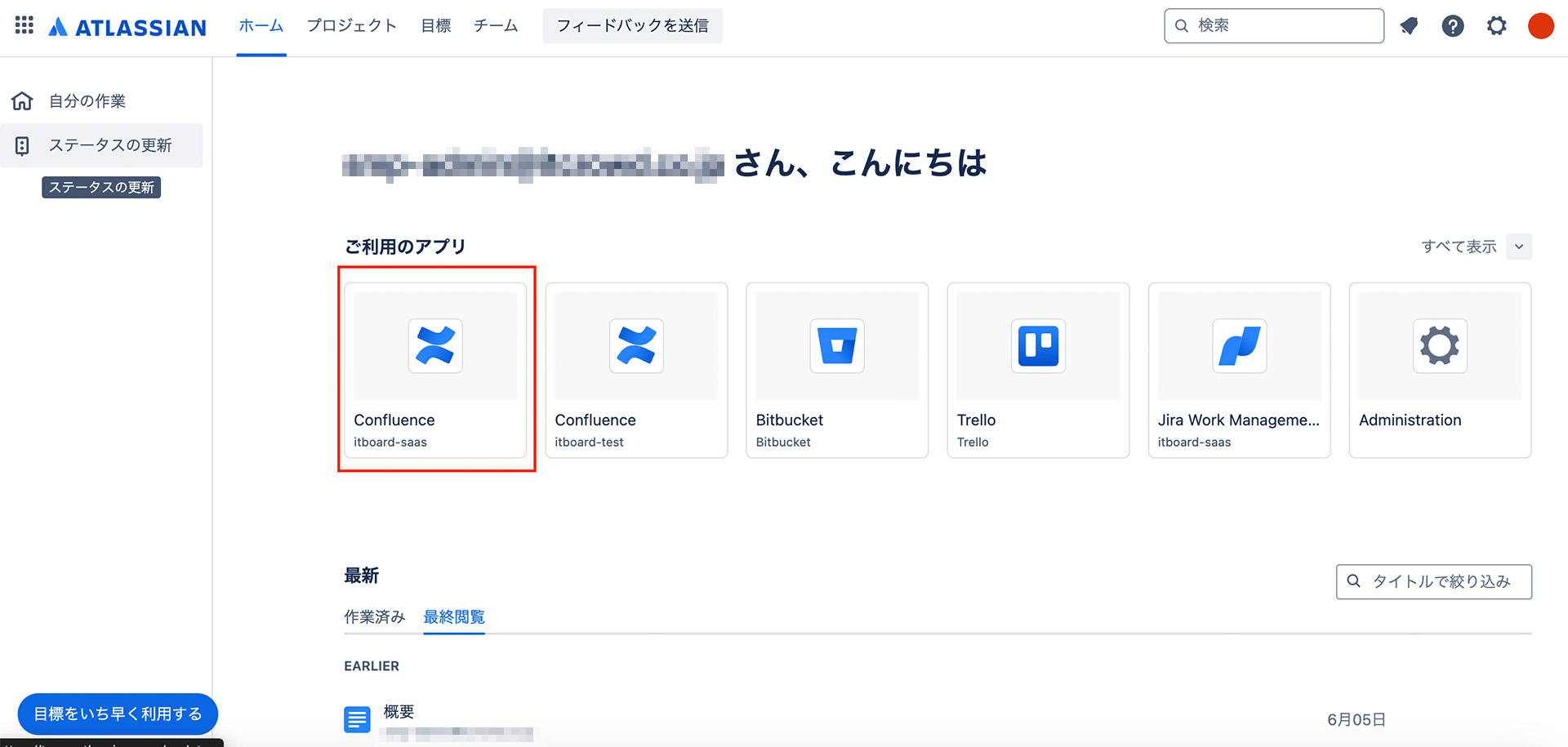ログイン後、『ご利用のアプリ』から『Confluence』を選択します。