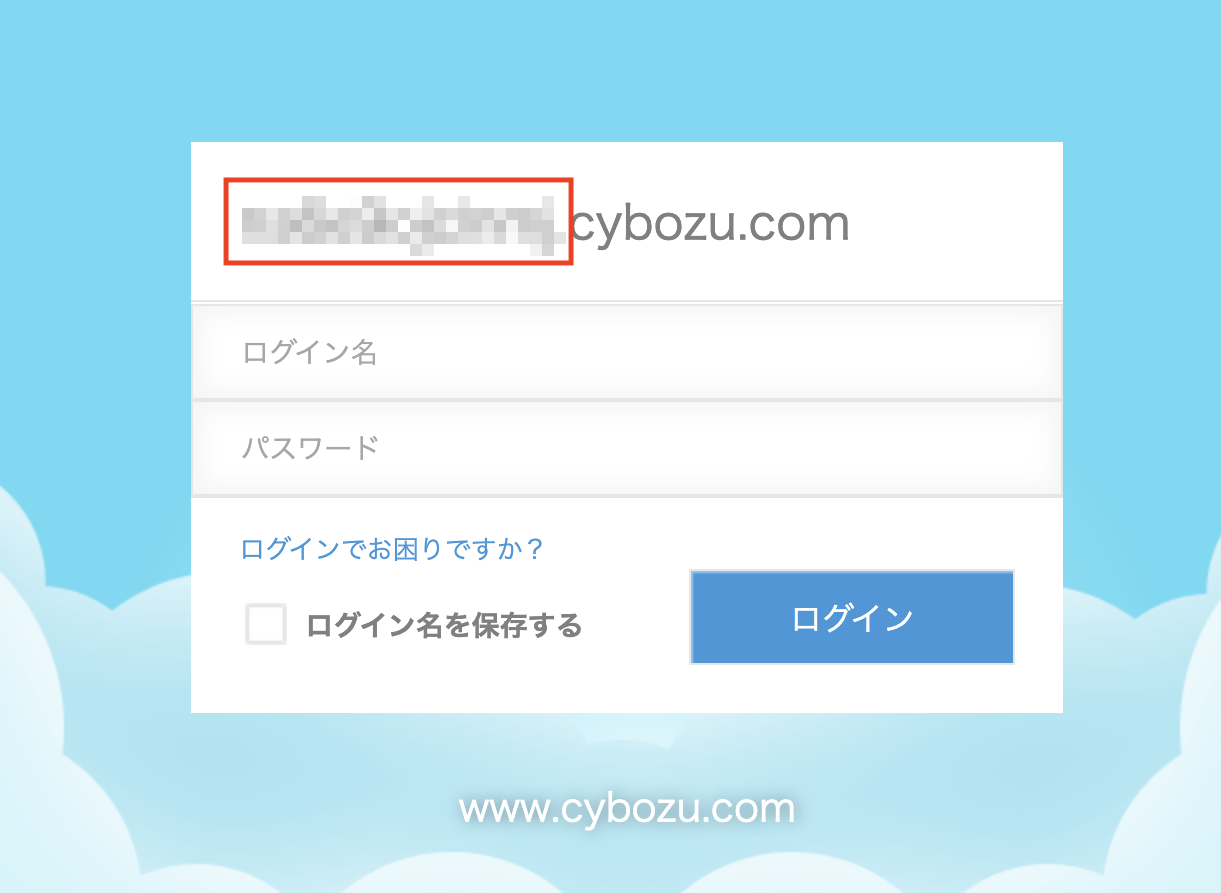 サイボウズ Officeログイン時に表示される『.cybouzu.com』の前に記載されている「ワークスペースキー」(サブドメイン)をコピーして保管します。