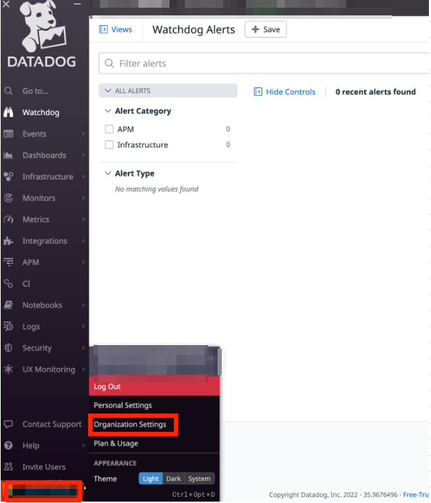 左下部にある『アイコンマーク』を選択し、『organization setting』を押下します。