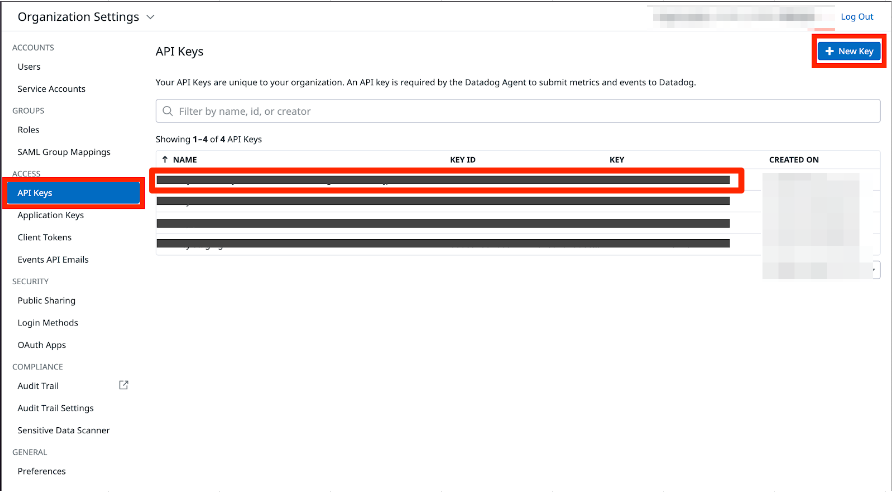 『API Keys』を押下し『➕New Key』を選択し、API Keyを作成します。