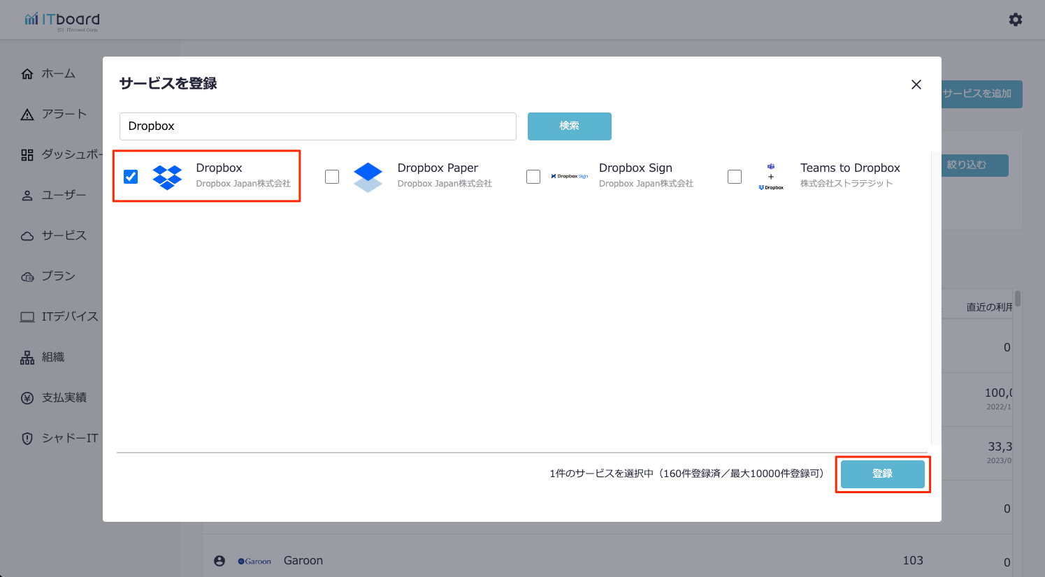 1.ITboardでサービス選択からDropboxを追加する
