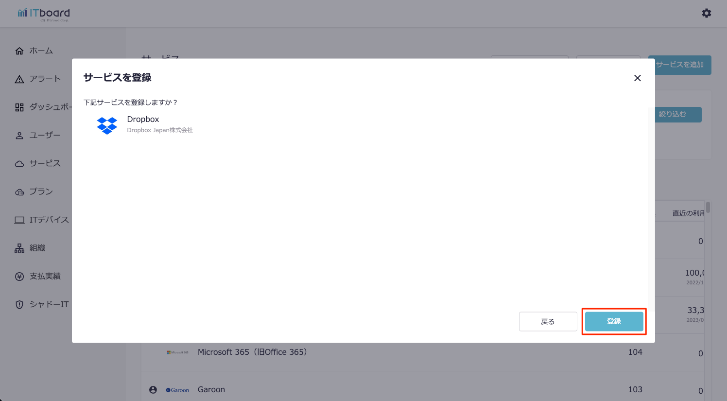 登録確認のモーダルが出現するので、『登録』ボタンを押下します。