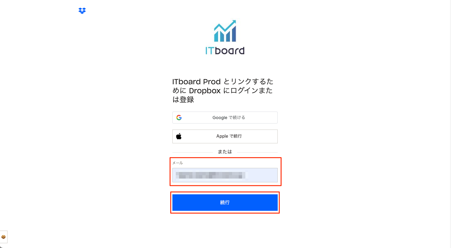 ITboardのアプリ連携ページでDropboxを連携する手順です。