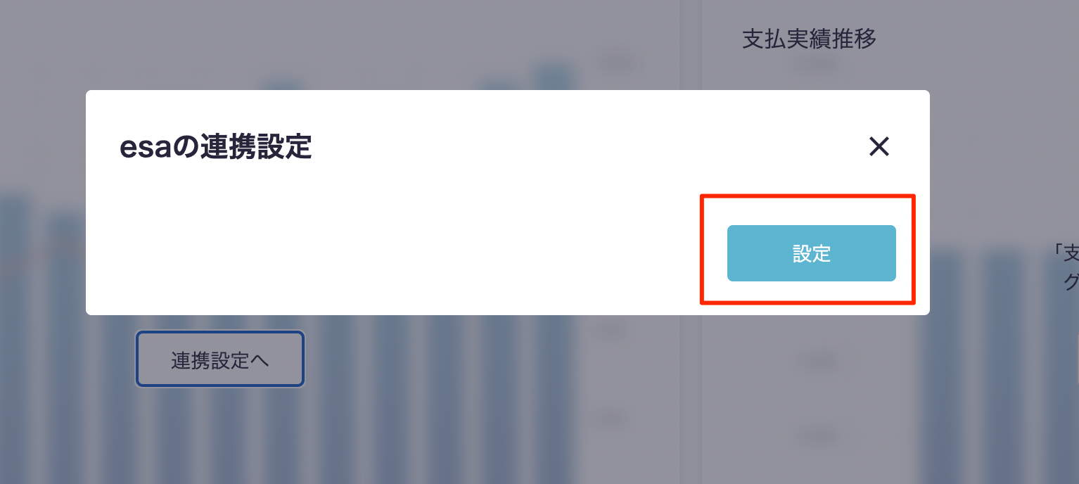 esaの連携設定モーダルが出現するので、『設定』ボタンを押下します。