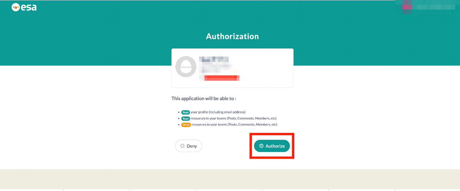 esaのアプリ連携画面が表示されるので、『Authorize』を押下します。