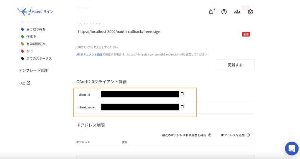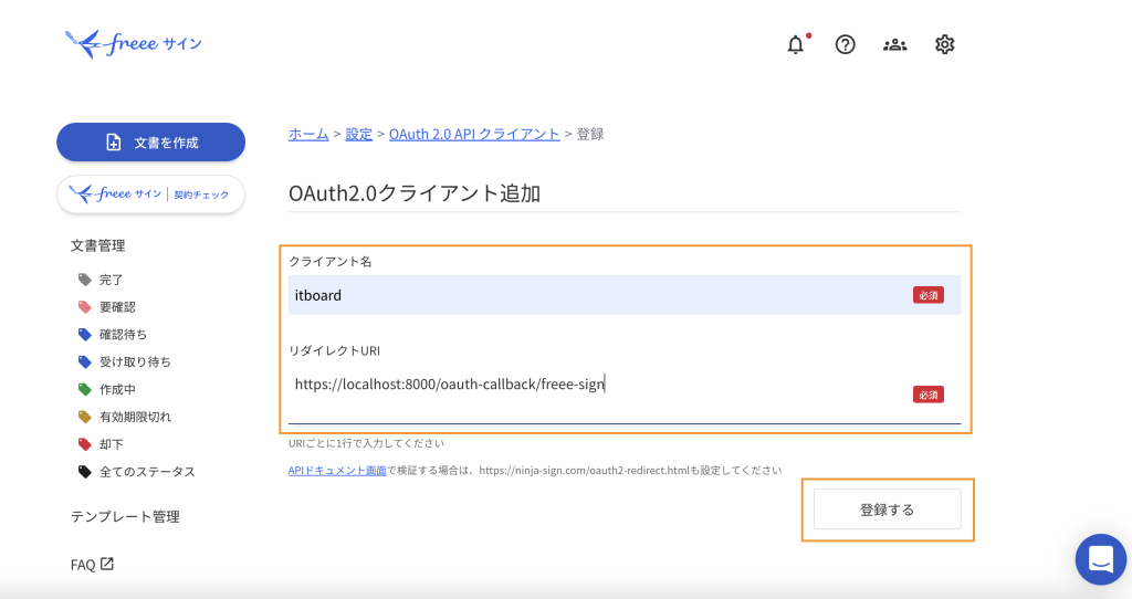- 「リダイレクトURI」は「https://www.itboard.jp/oauth-callback/freee-sign」を入力してください。