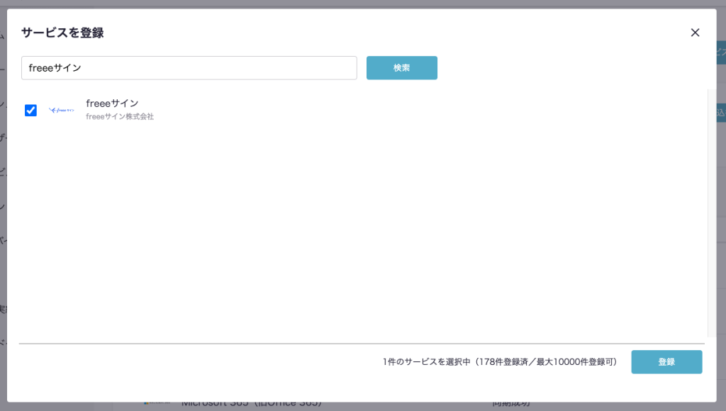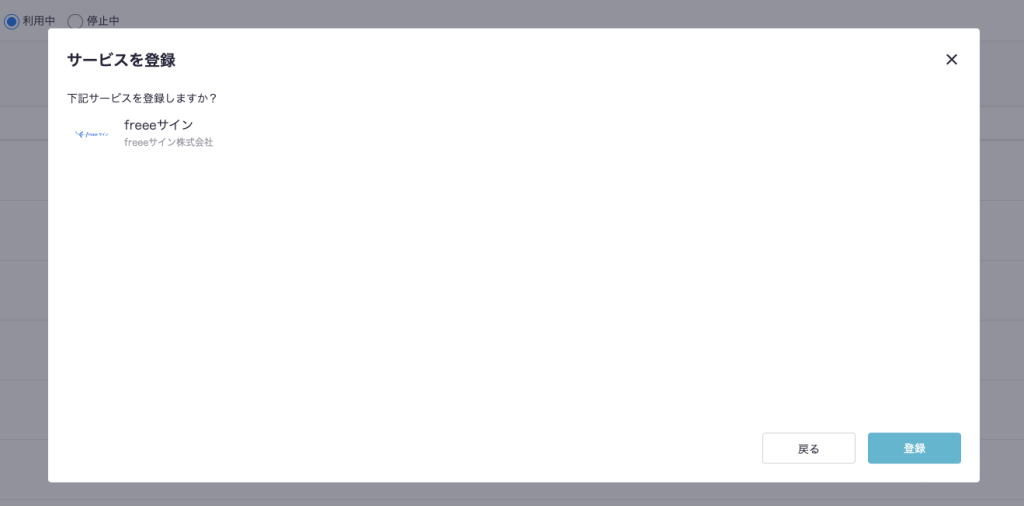 その後、下画像のようなモーダルが出現しますので、入力欄にサービス名である「freeeサイン」と入力します。