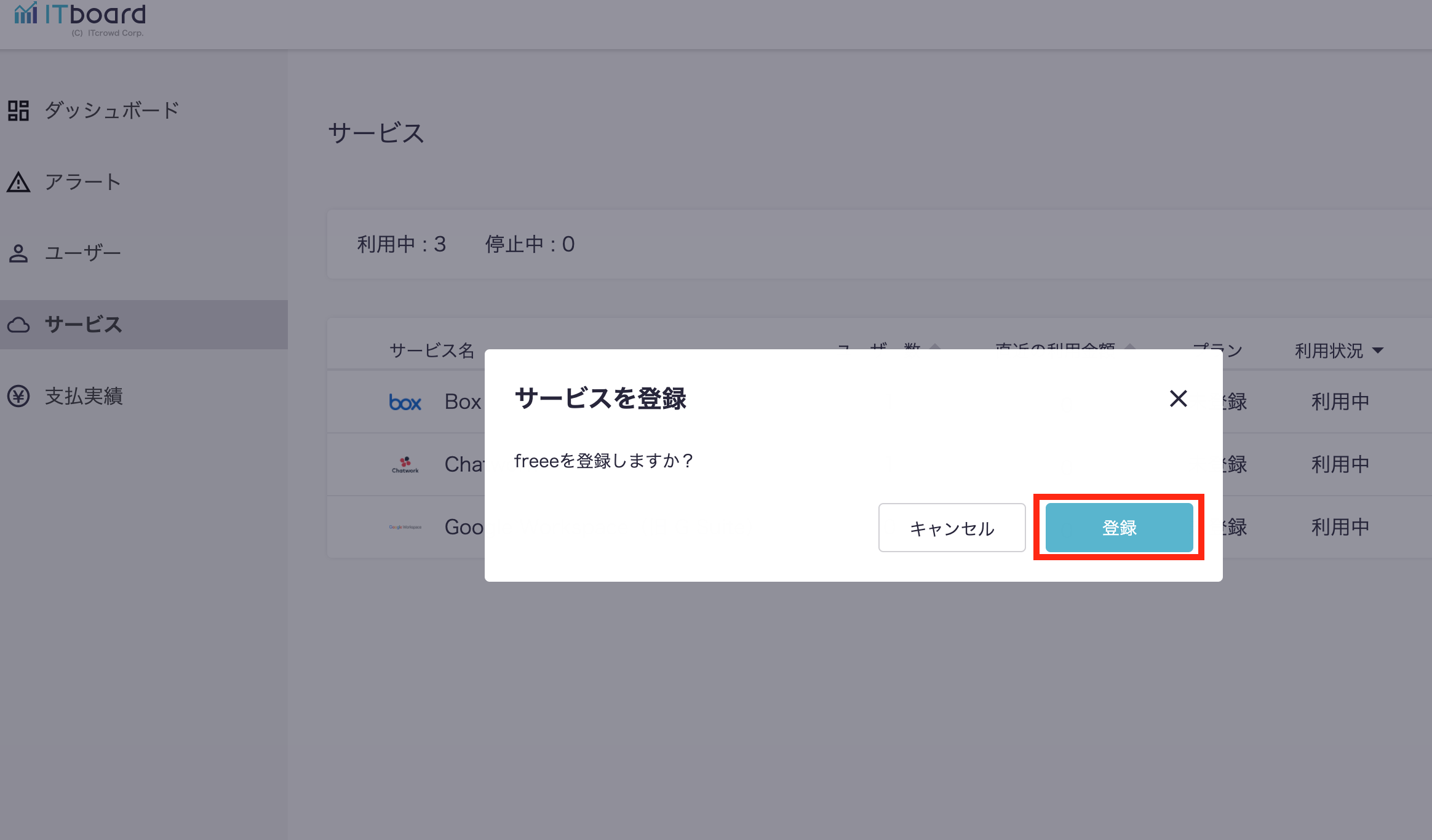 登録確認のモーダルが出現するので、『登録』ボタンを押下します。