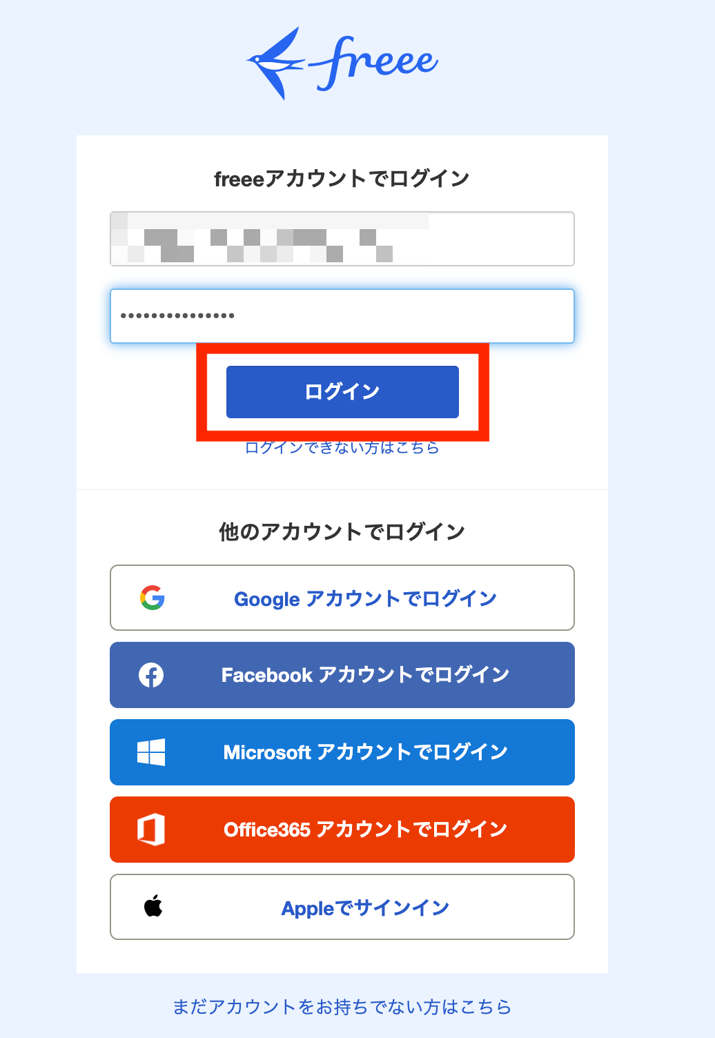 freeeアカウントのログインを求められるので、連携したいアカウントのメールアドレス、パスワードを入力しログインします。