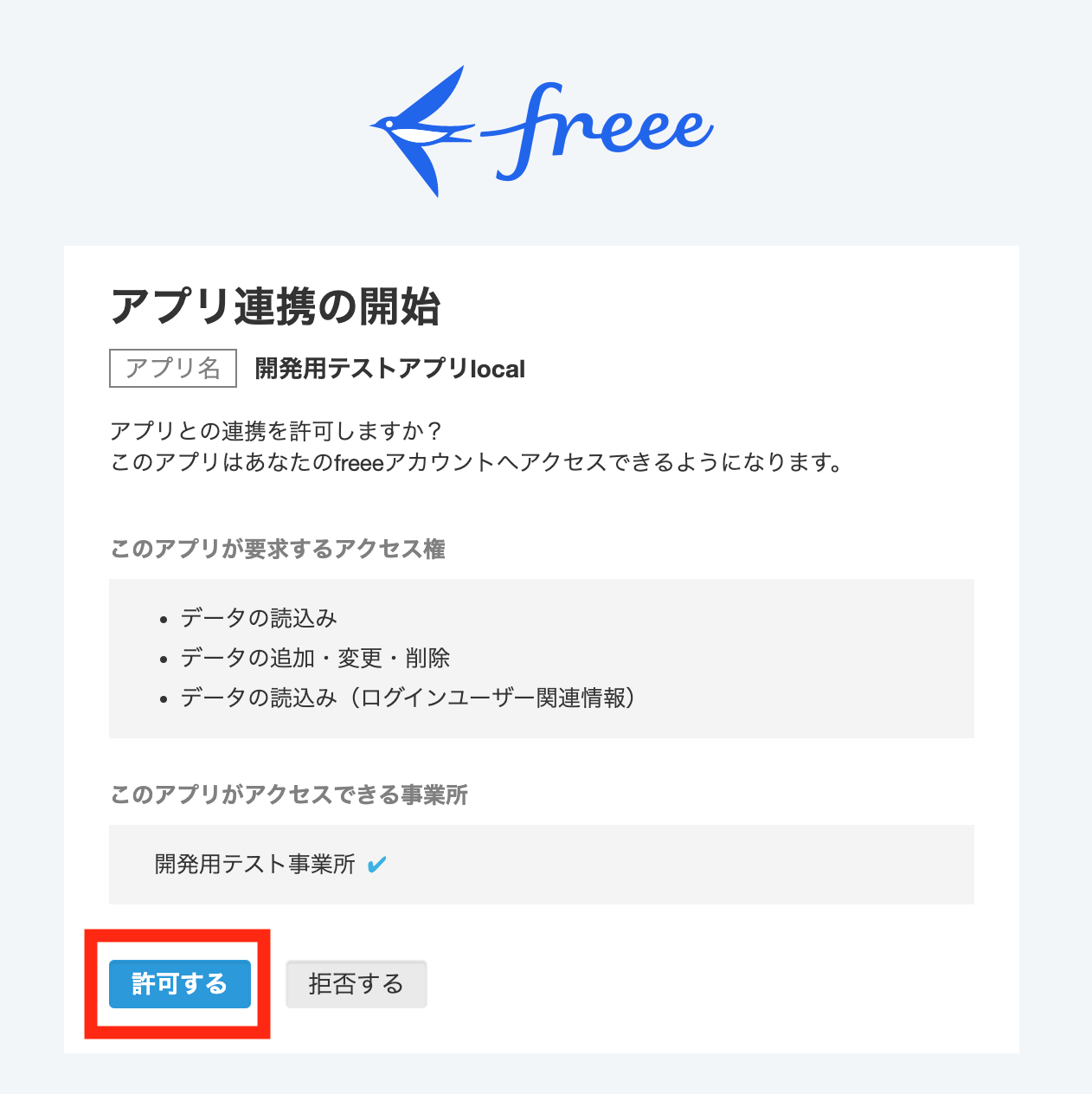 アプリ連携の許可を求められるので、『許可する』ボタンを押下します。