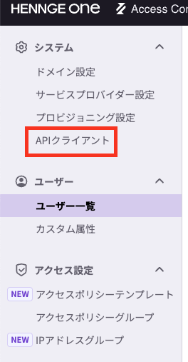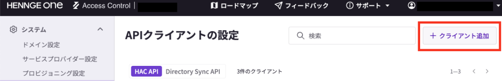 左側のメニューにある「APIクライアント」をクリックして、APIクライアントの設定画面へ遷移します。