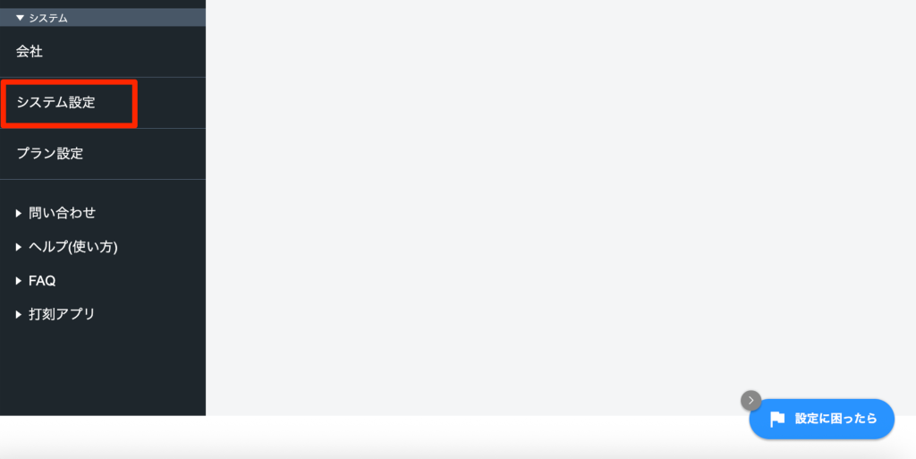 2. ログイン後、左サイドバーの下の方にあるシステム設定を押下する。