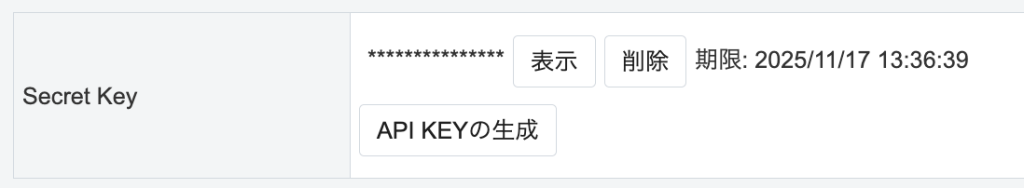 ※更新する時はもう一度「API KEY生成」ボタンを押下して新しいAPI KEYを生成する