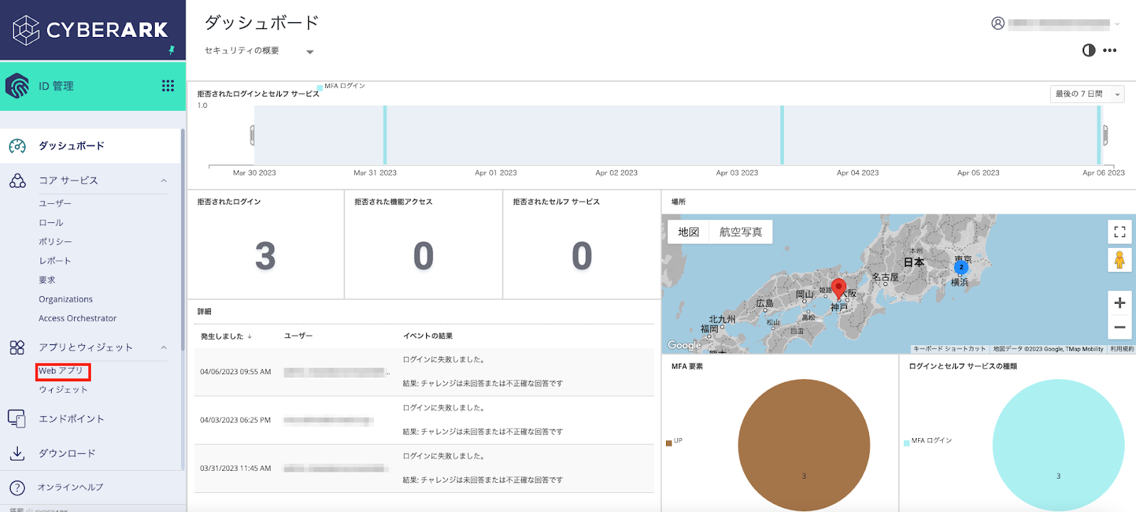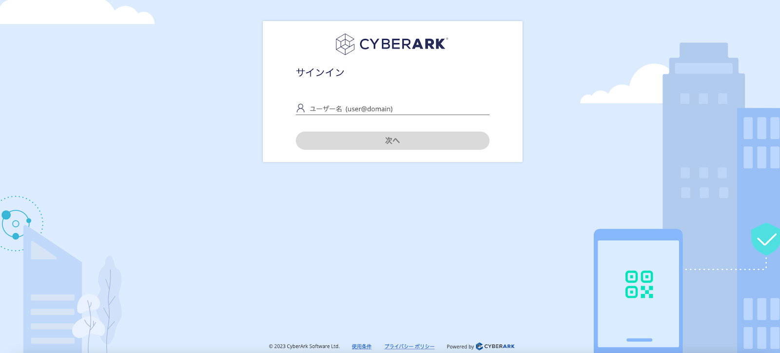 「https://◯◯◯◯◯.my.idaptive.app/admin」にアクセスし、管理者ポータルにログインしてください。(◯◯◯◯◯はユーザーにより異なります)