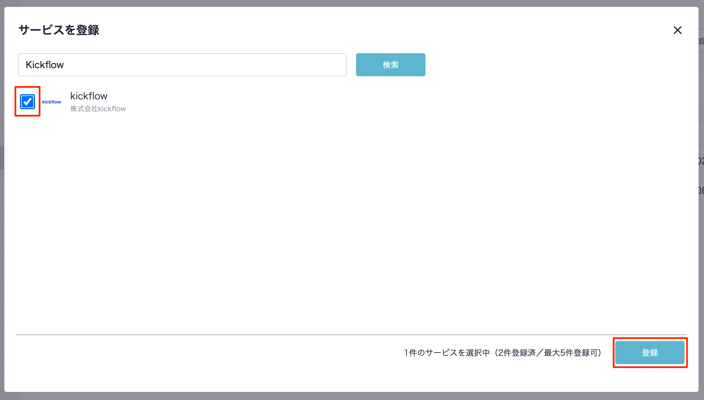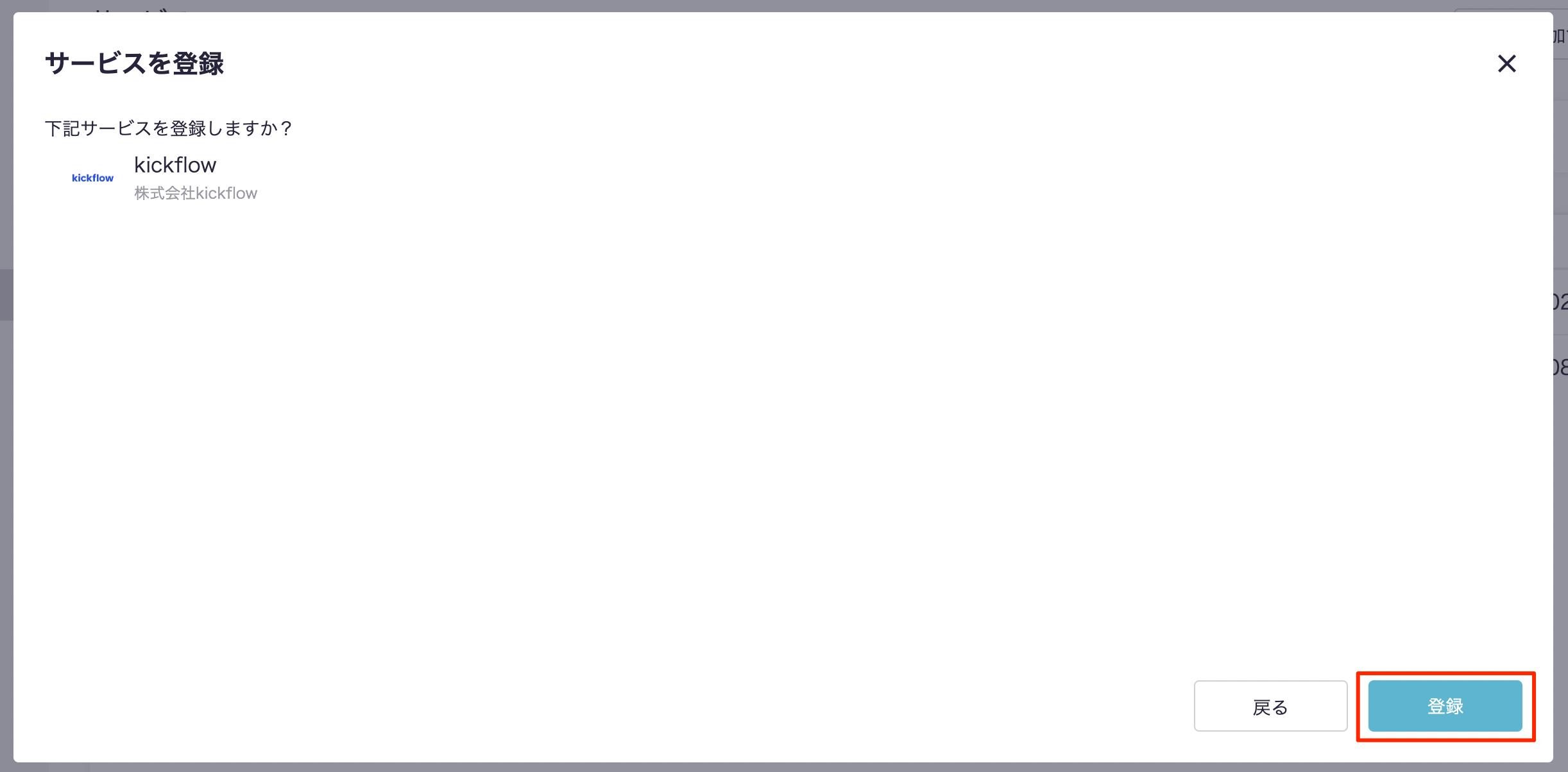 登録確認のモーダルが出現するので、『登録』ボタンを押下します。