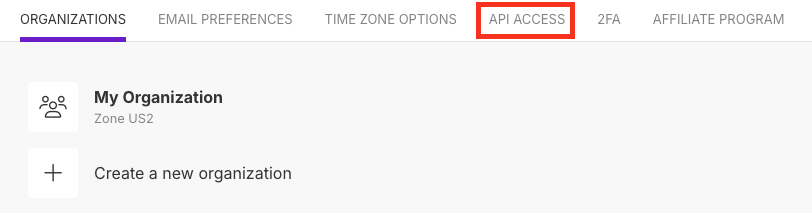 プロフィール画面で「API ACCESS」を選択します。