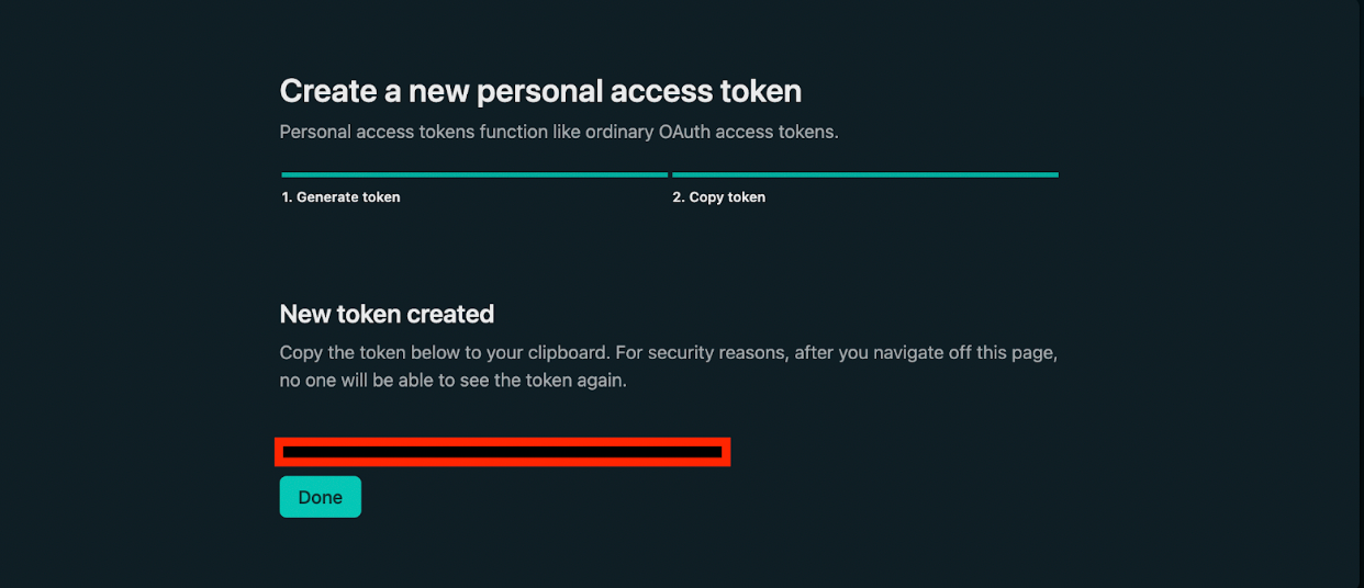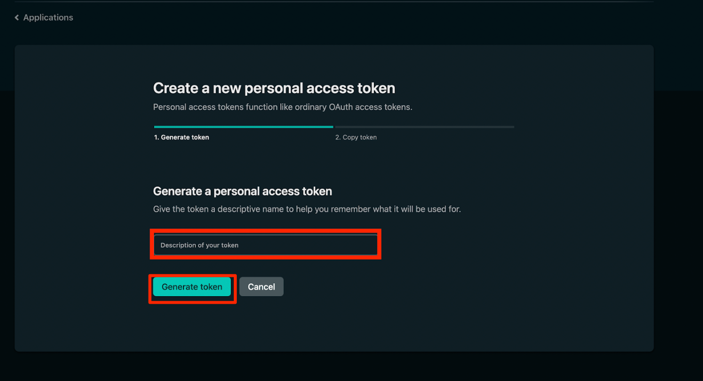 任意の名前を入力し、『Generate token』ボタンを押下します。
