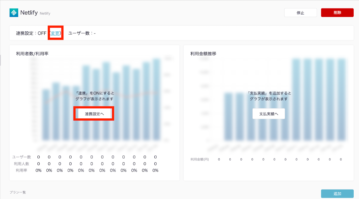 サービス詳細画面に遷移しますので、サービス連携を行いましょう。