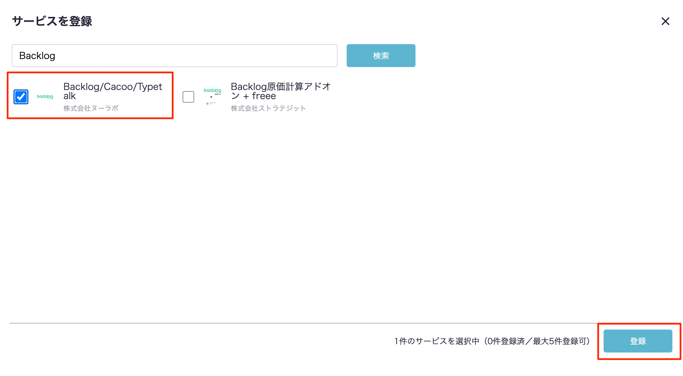 登録確認のモーダルが出現するので、『登録』ボタンを押下します。