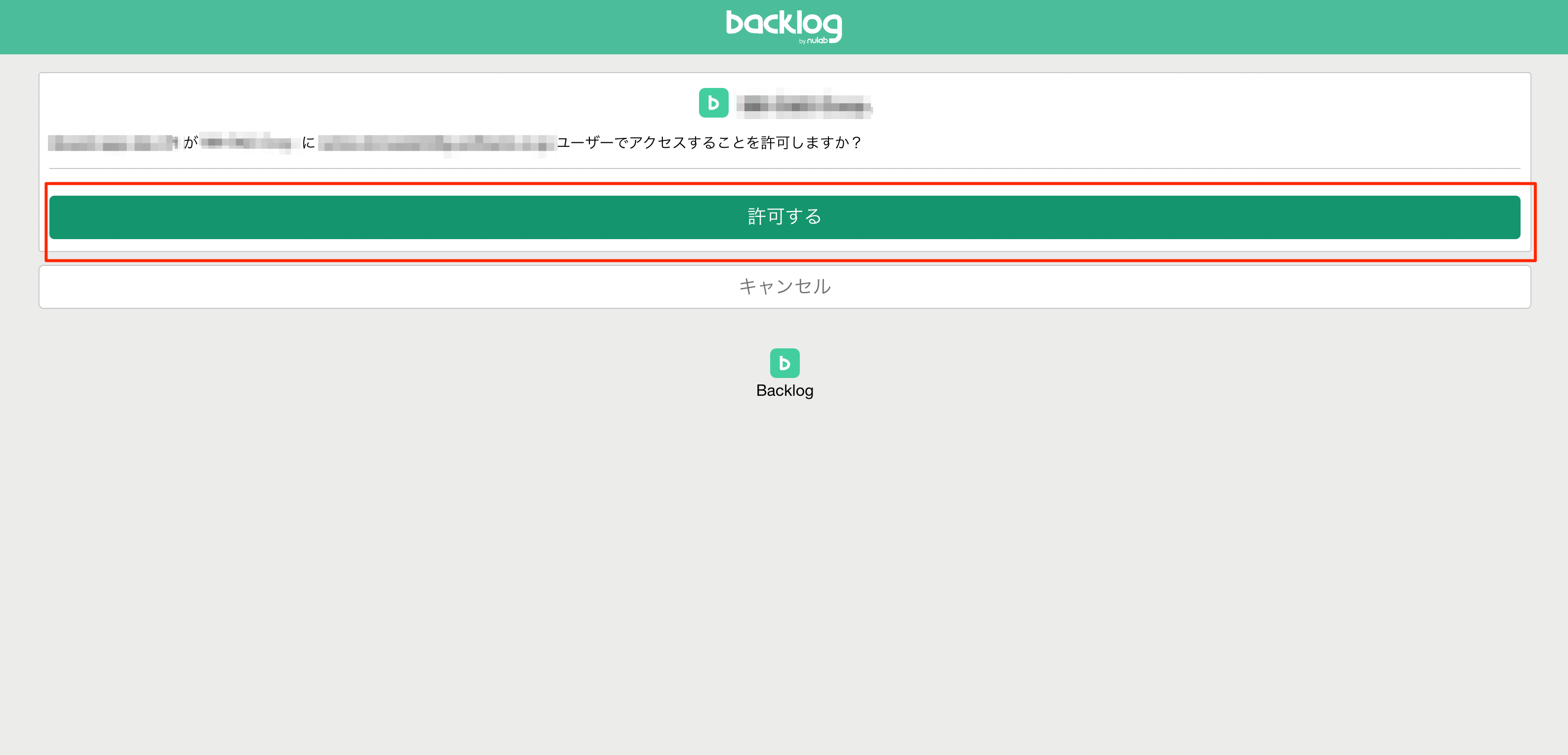ITboardからBacklogアカウント情報へのアクセスを許可します。