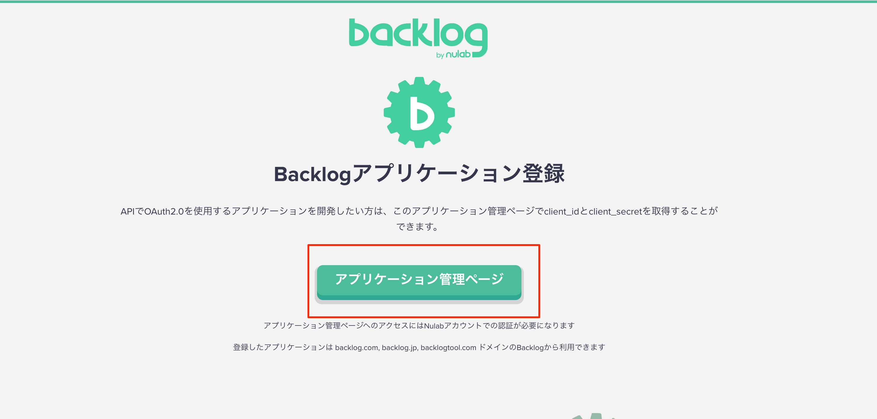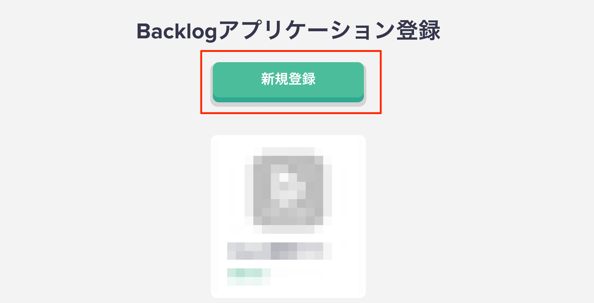 Backlogにログインをし、「https://backlog.com/developer/applications/」にアクセスします。
