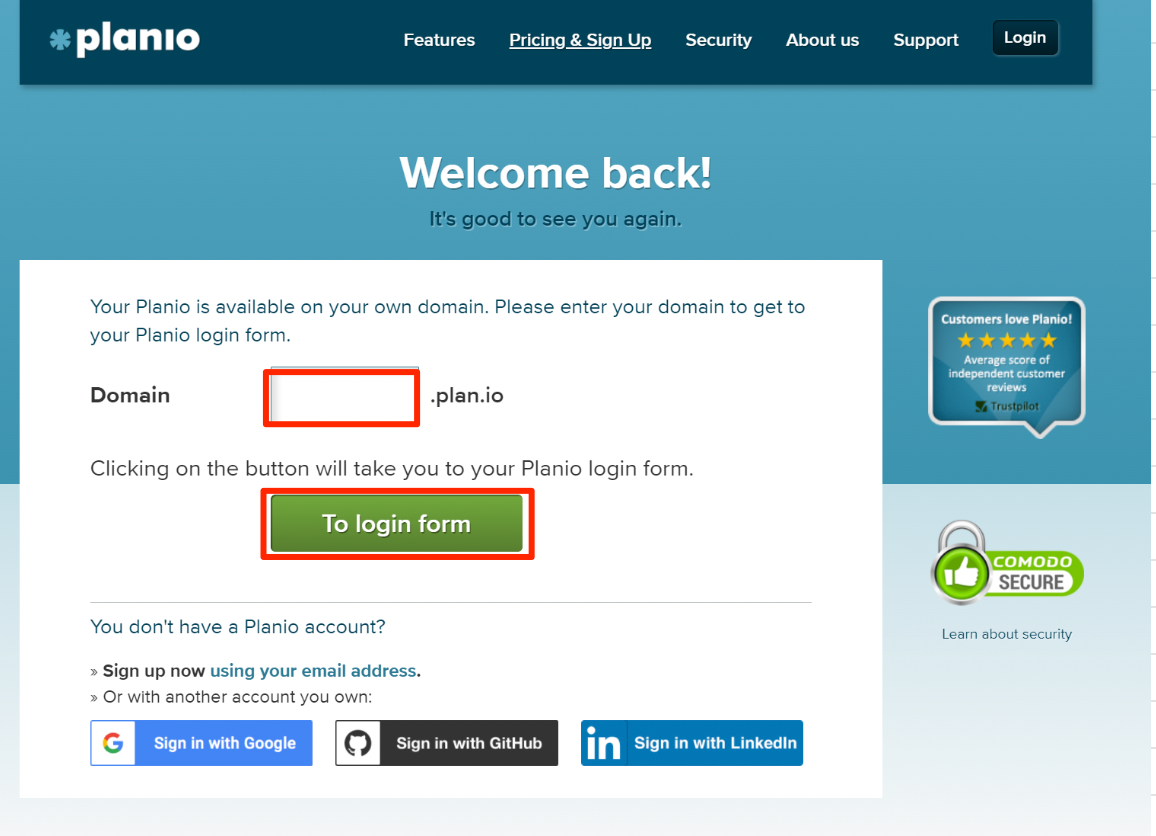 ※ドメインはご利用のPlanioのURLが「https://example.planio.jp/some-page」の場合「example.planio.jp」の部分になります。