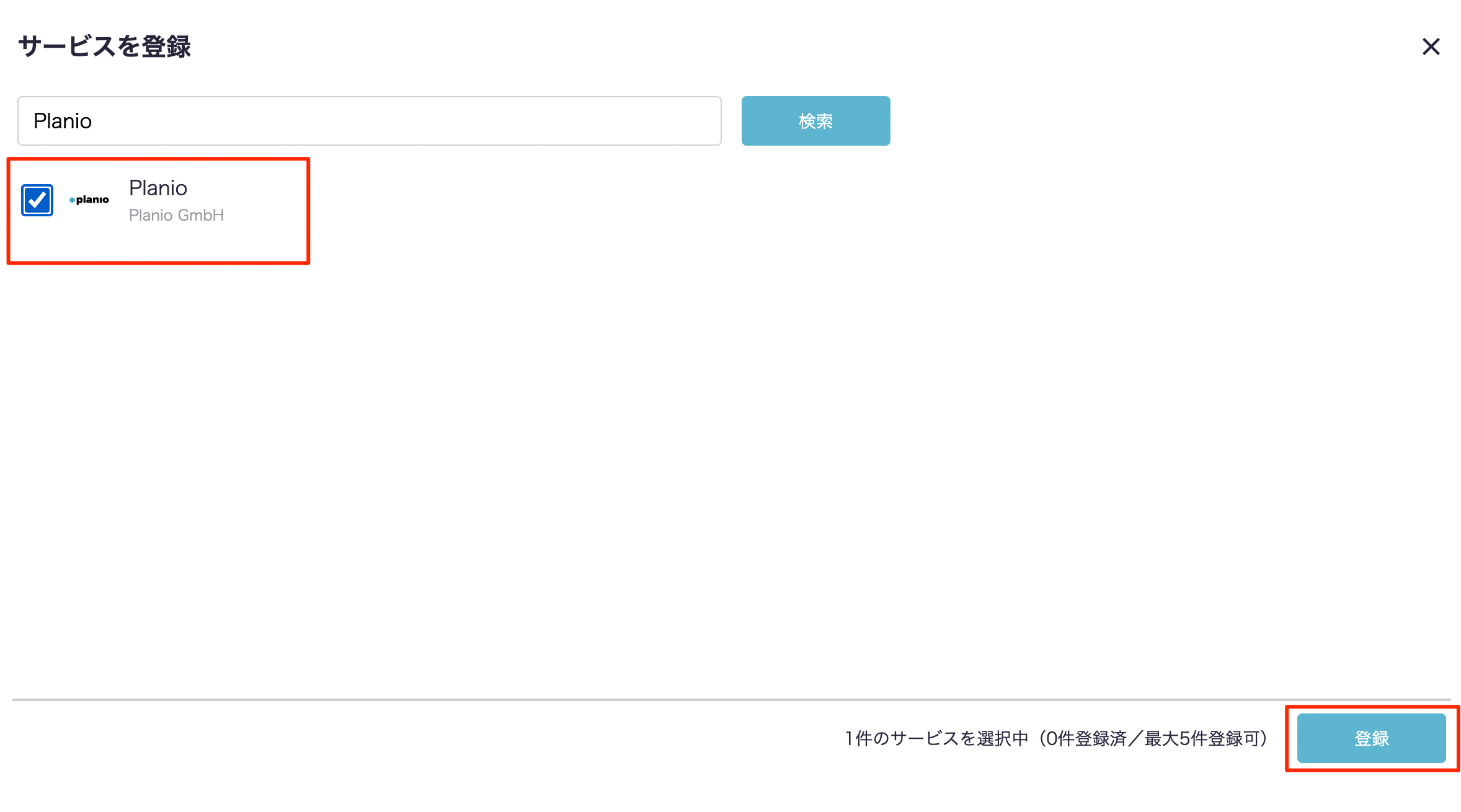 その後、下画像のようなモーダルが出現しますので、入力欄にサービス名である「Planio」と入力します。