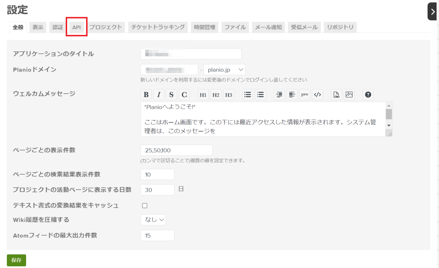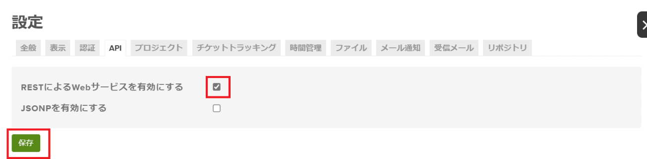 『RESTによるWebサービスを有効にする』チェックをONにして、『保存』ボタンを押下します。