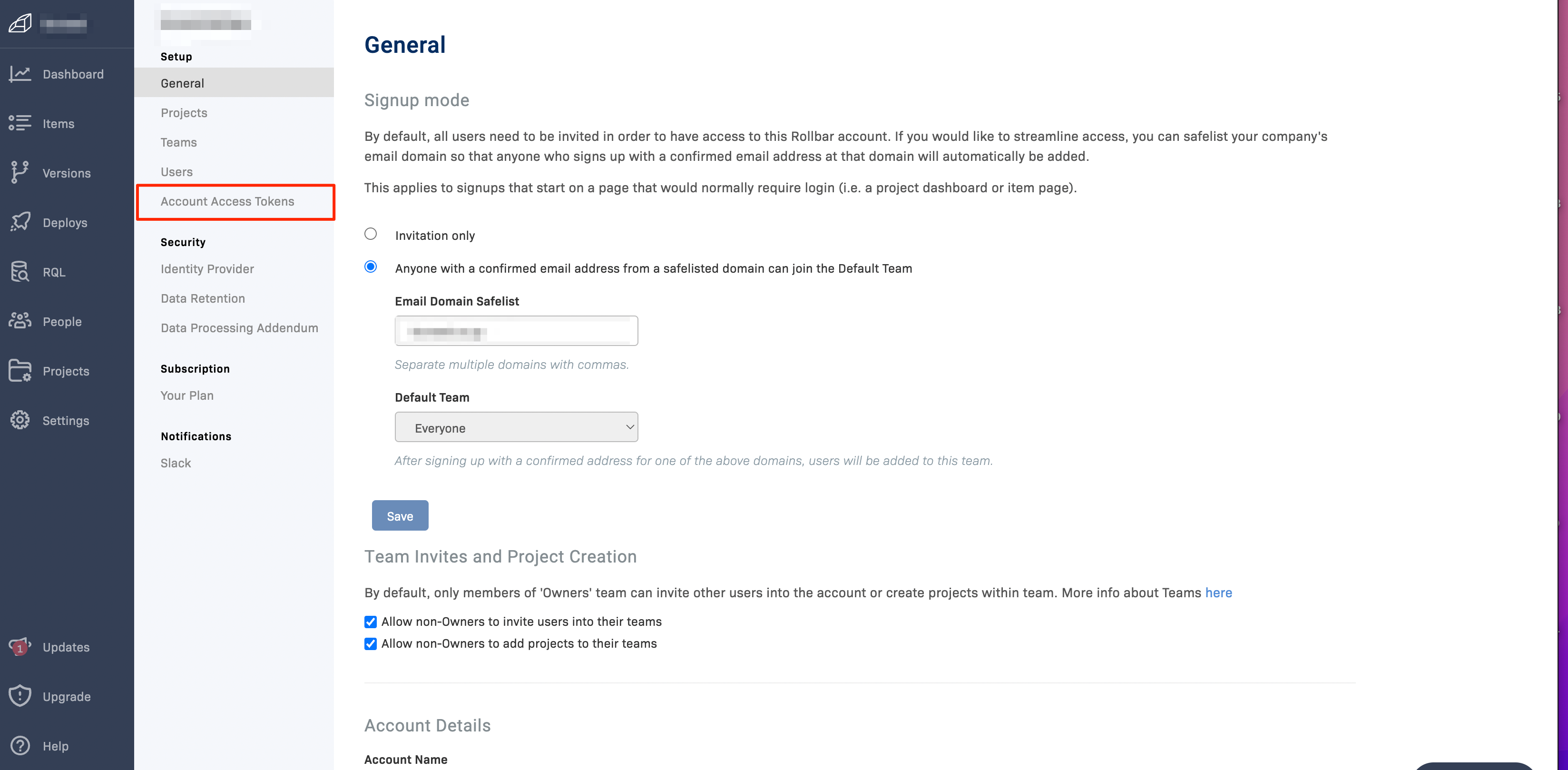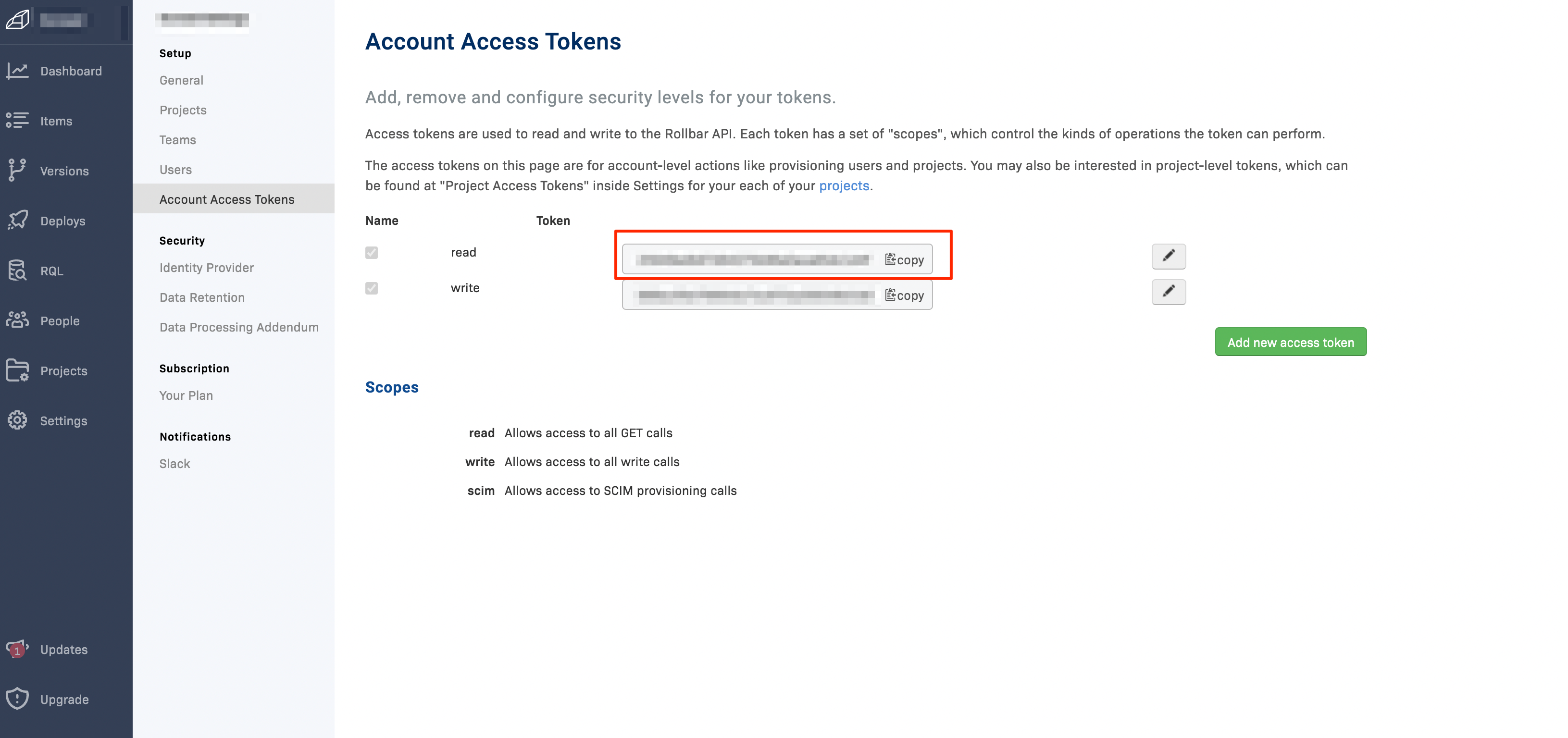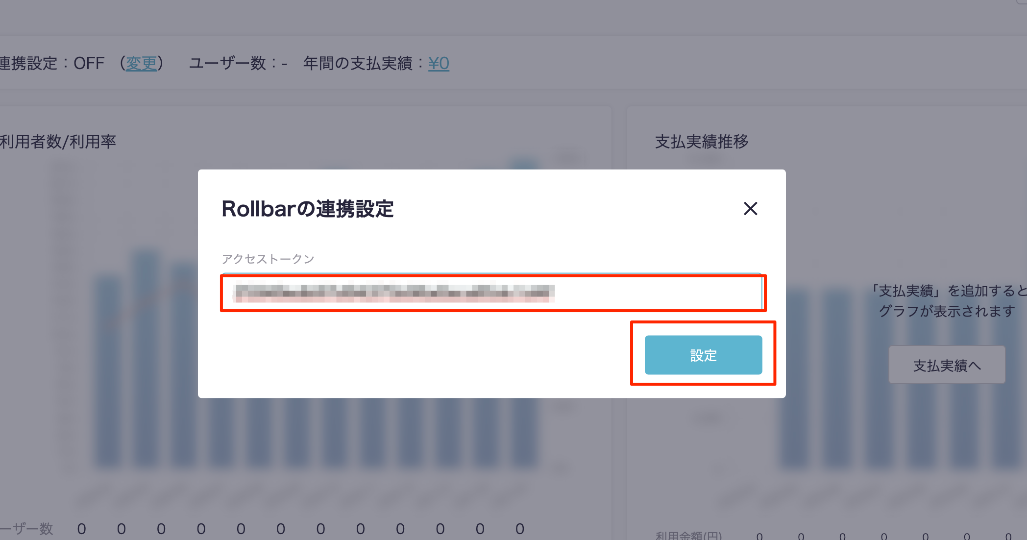 Rollbarの連携設定モーダルが出現するので、「アクセストークン」を入力し『設定』ボタンを押下します。